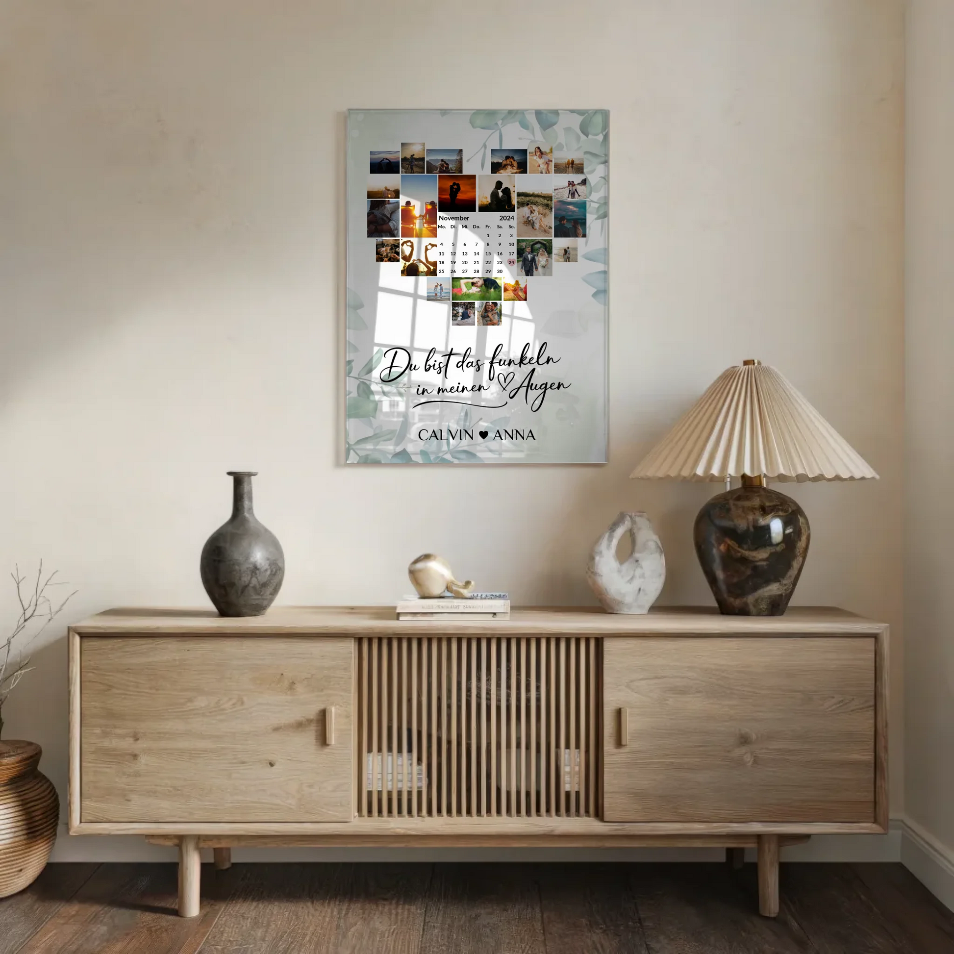 Entdecke das einzigartige Acrylglas Bild Liebe Fotocollage Du Bist Das Funkeln, ein personalisiertes Geschenk, das Herzen höher schlagen lĂ€sst. Dieses besondere Kunstwerk ist ideal fĂŒr den Valentinstag und andere romantische AnlĂ€sse. Mit der Möglichkeit, ĂŒber 20+ Fotos, Namen, Datum und ein Hintergrundbild zu personalisieren, wird dieses Geschenk zu einem unvergesslichen Highlight.
