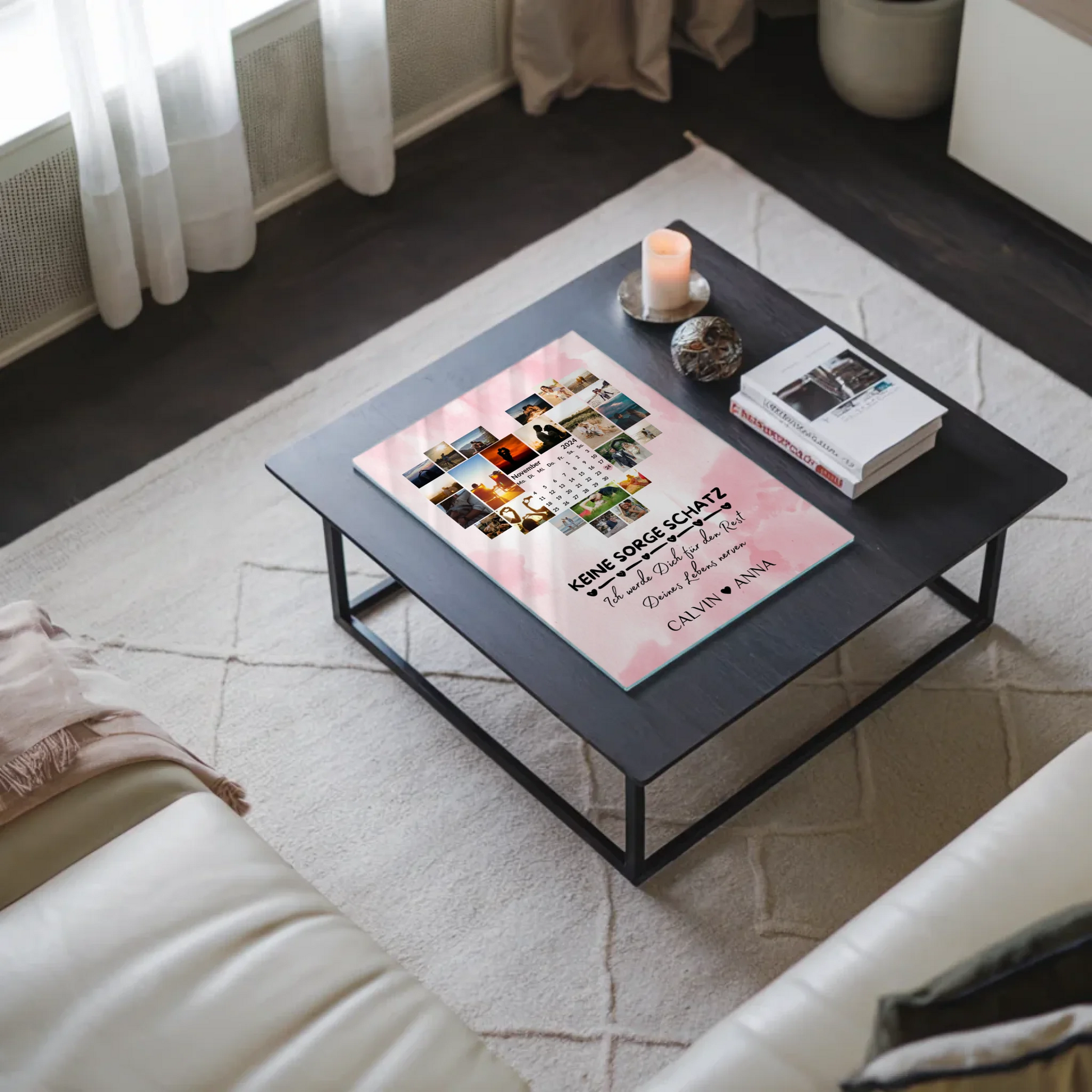 Überrasche deinen Schatz mit einem einzigartigen Geschenk, das von Herzen kommt! Unser Acrylglas Bild Liebe Fotocollage Ewig Nerven Schatz ist die perfekte Möglichkeit, eure schönsten Momente in Szene zu setzen. Personalisiere dieses besondere Geschenk mit über 20+ Fotos, euren Namen, einem bedeutenden Datum und einem Hintergrundbild deiner Wahl.