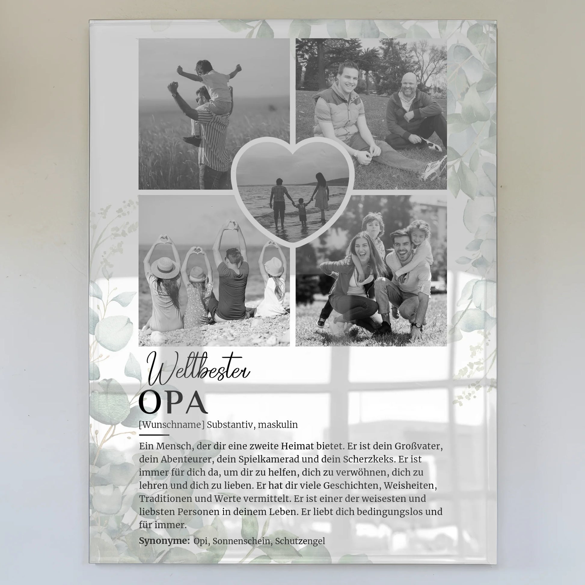 Acrylglas Bild personalisiert Definition Opa mit 5 Fotos Schwarz Weiß Eukalyptus
