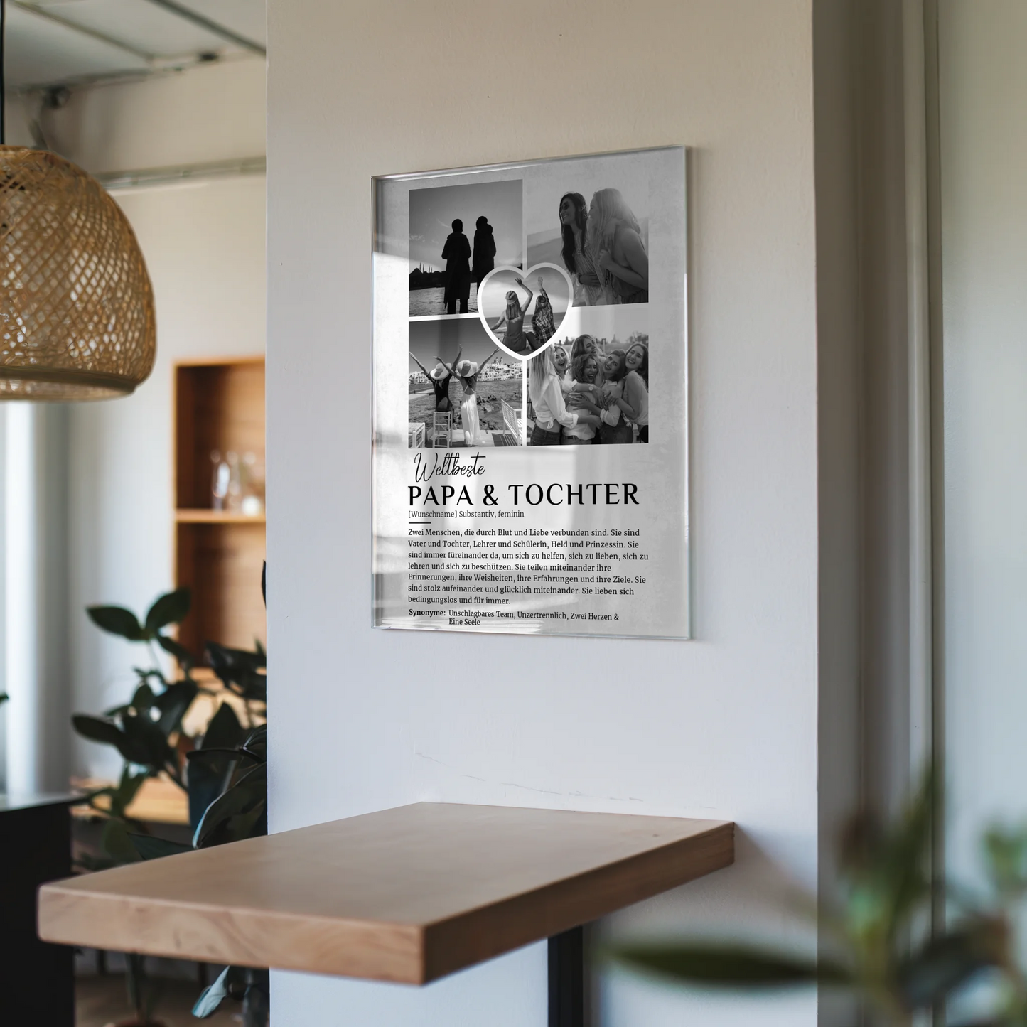 Acrylglas Bild Personalisiert Definition Papa Tochter 5 Fotos Grau Vintage