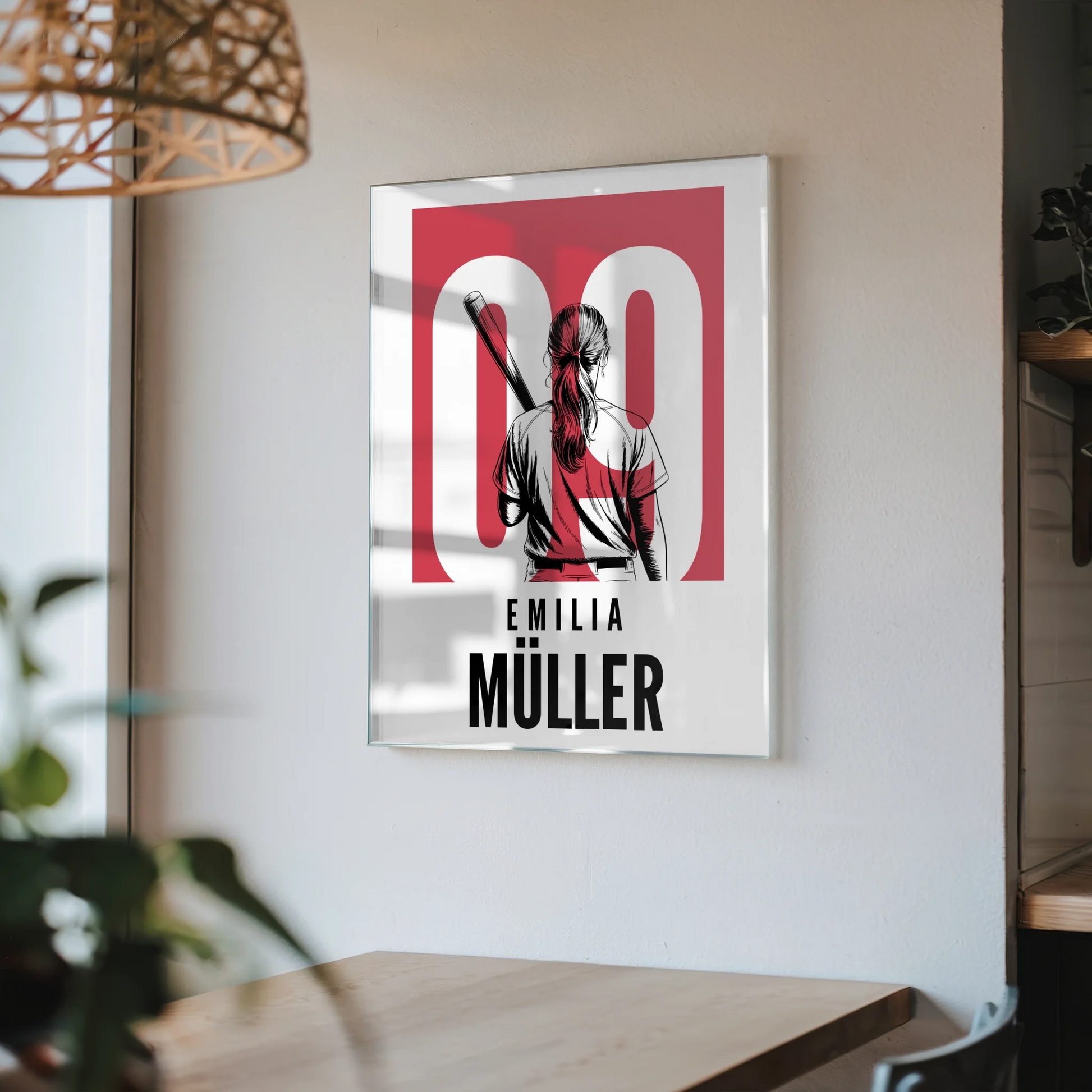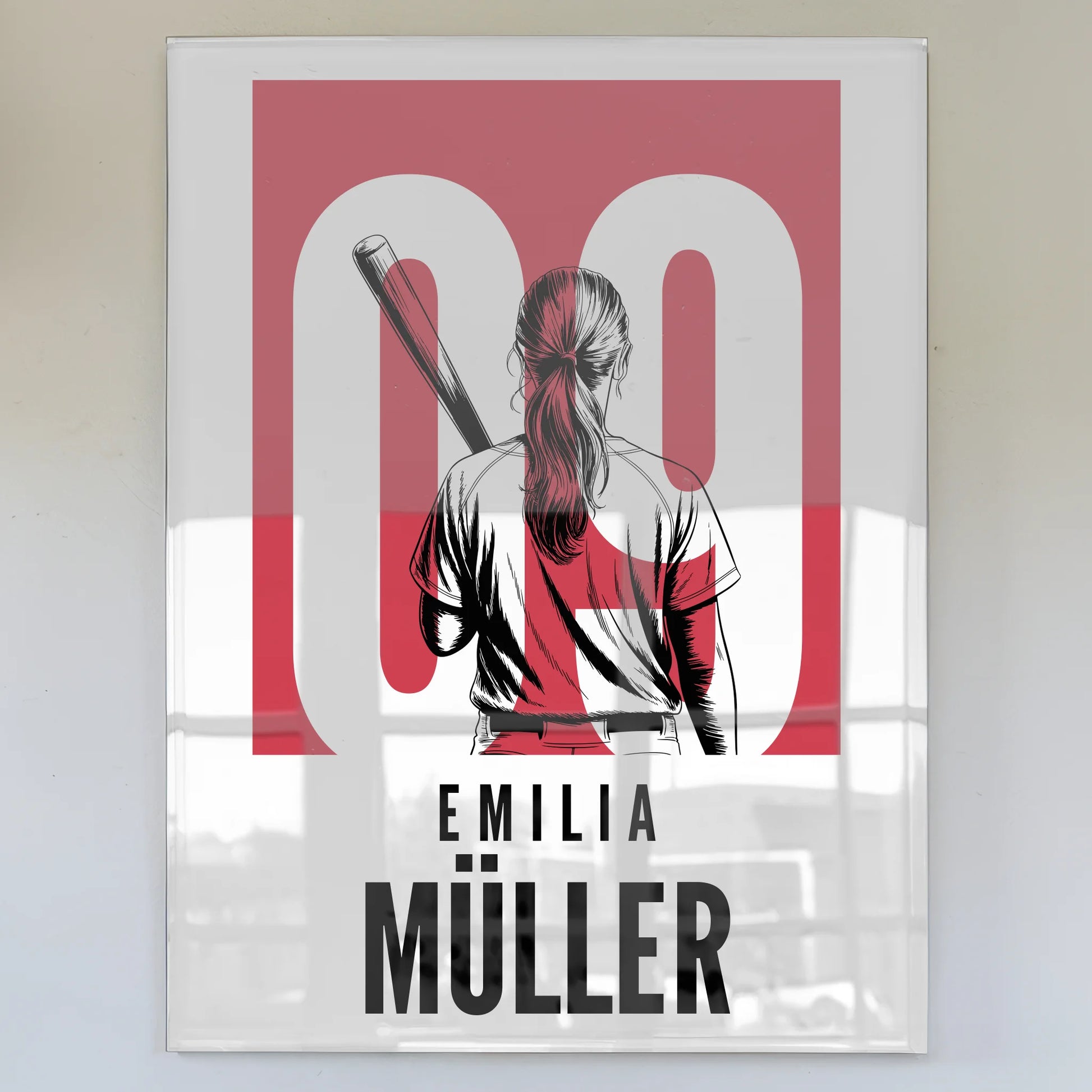 Personalisierte Geschenkidee: Acrylglas Bild Personalisiert magnetisch Baseball Baseballspielerin Geschenk für Tocher Mama Tante Freundin