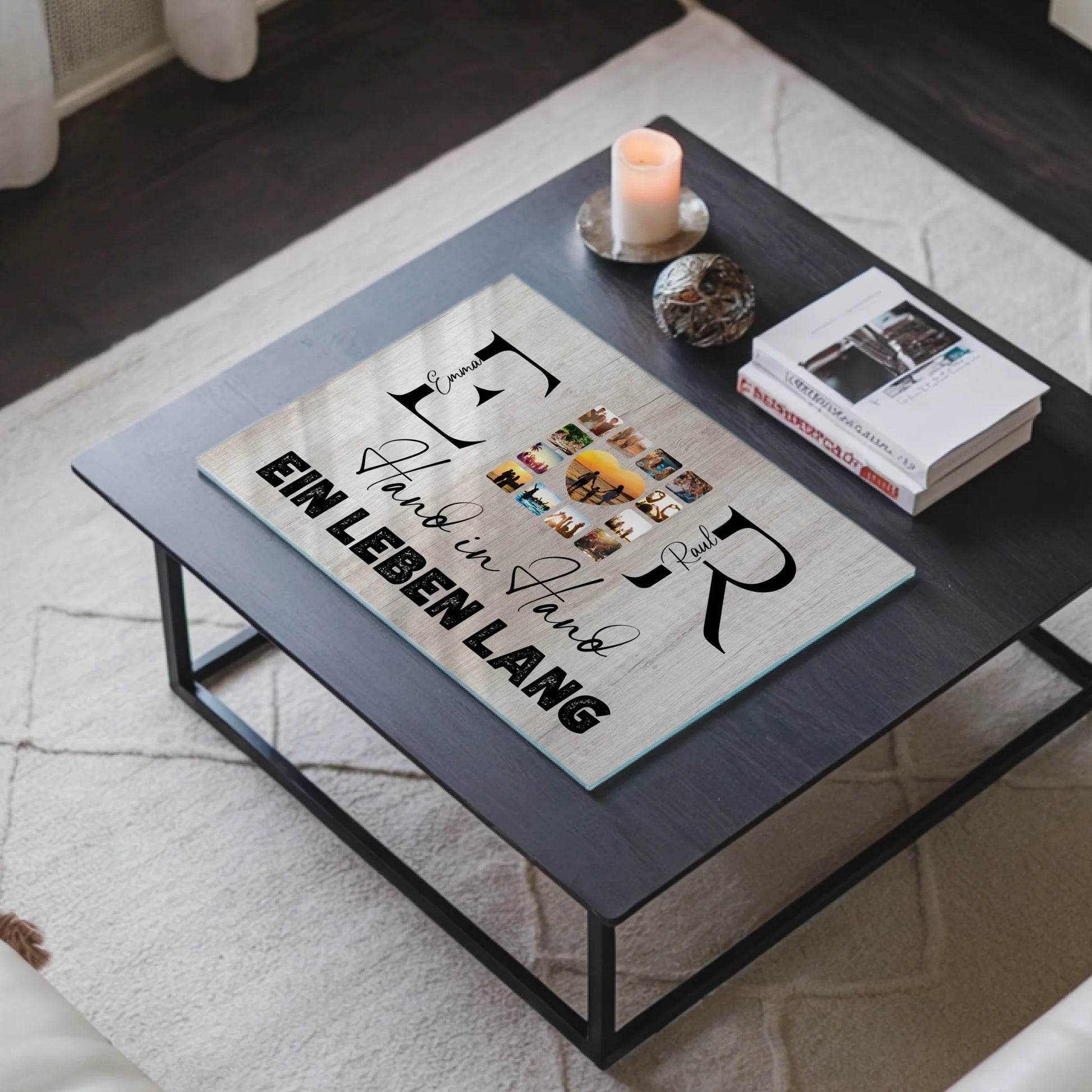 Acrylglas Bild Personalisiert magnetisch Mit Initialien Namen und Fotos Hand In Hand Ein Leben Lang
