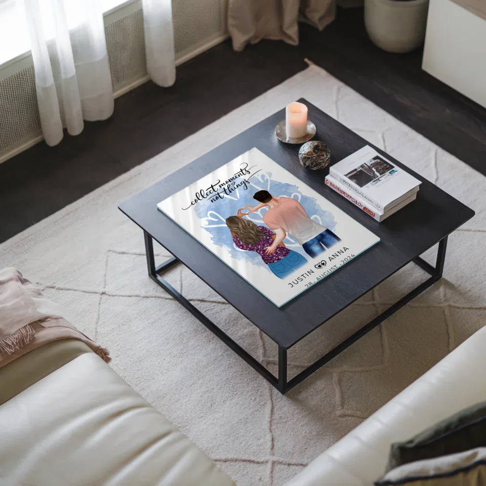 Setze auf Individualität und schenke ein Stück Erinnerung mit dem Acrylglas Bild personalisiert Paare Figuren Collect Moments Not Things. Jede Kreation spiegelt die Liebe und die besonderen Momente wider, die ihr gemeinsam teilt. Mach aus den kleinen Augenblicken etwas Großes und erlebe, wie dein personalisiertes Acrylglas Bild mit Namen und Figuren zum absoluten Highlight wird!