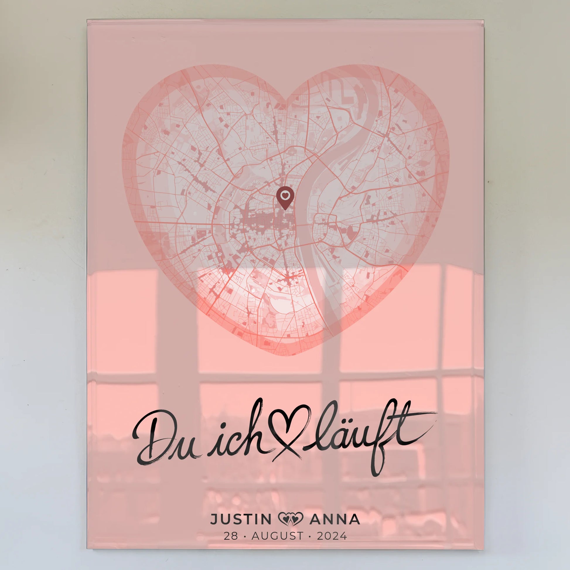 Acrylglas Bild personalisiert Stadtkarten Herz Altrosa Paare Du Ich LĂ€uft
