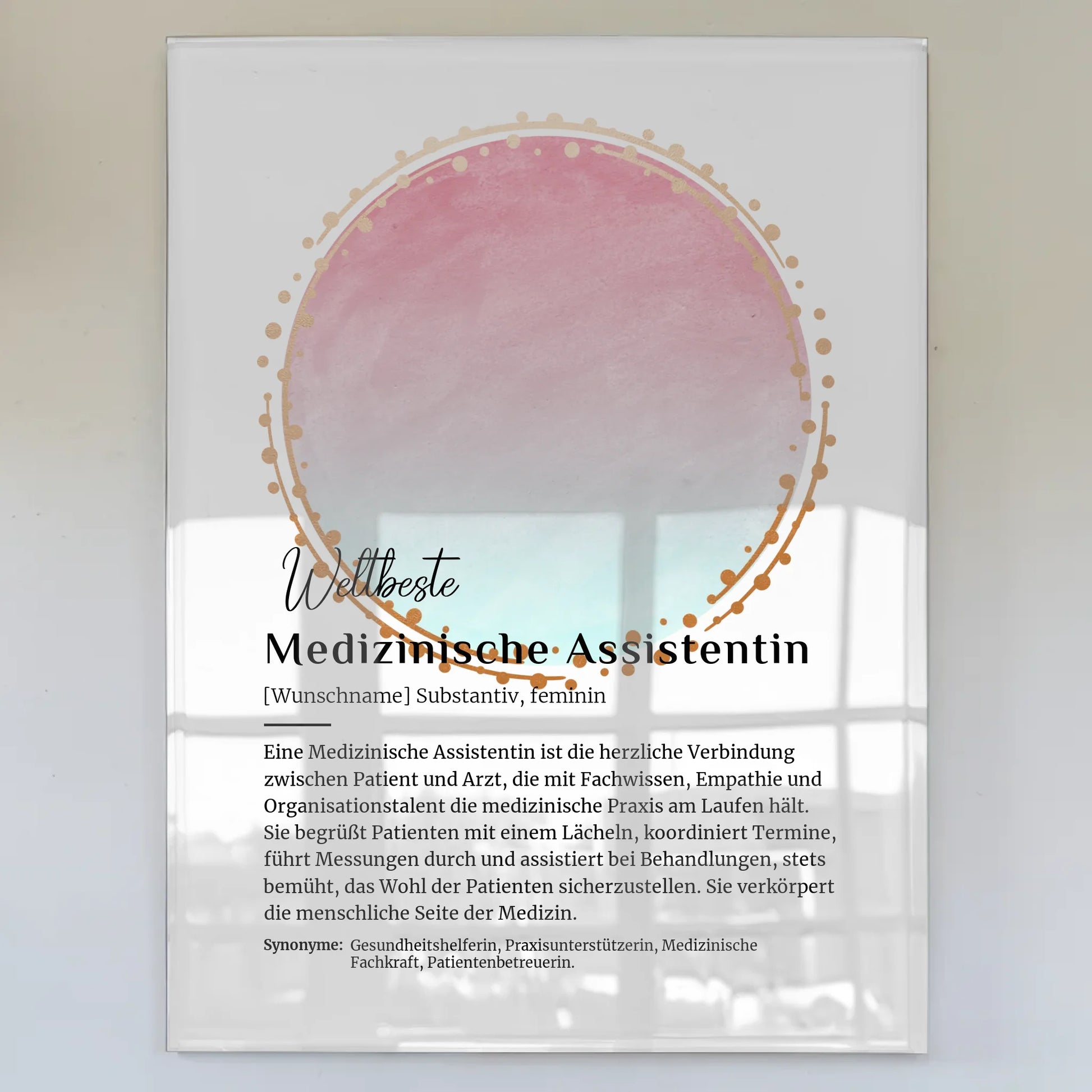 Gestalte jetzt dein persönliches Acrylglas Bild Poster Definition Medizinische Assistentin mit Namen Geschenkidee und mache jemandem eine Freude, die in Erinnerung bleibt!