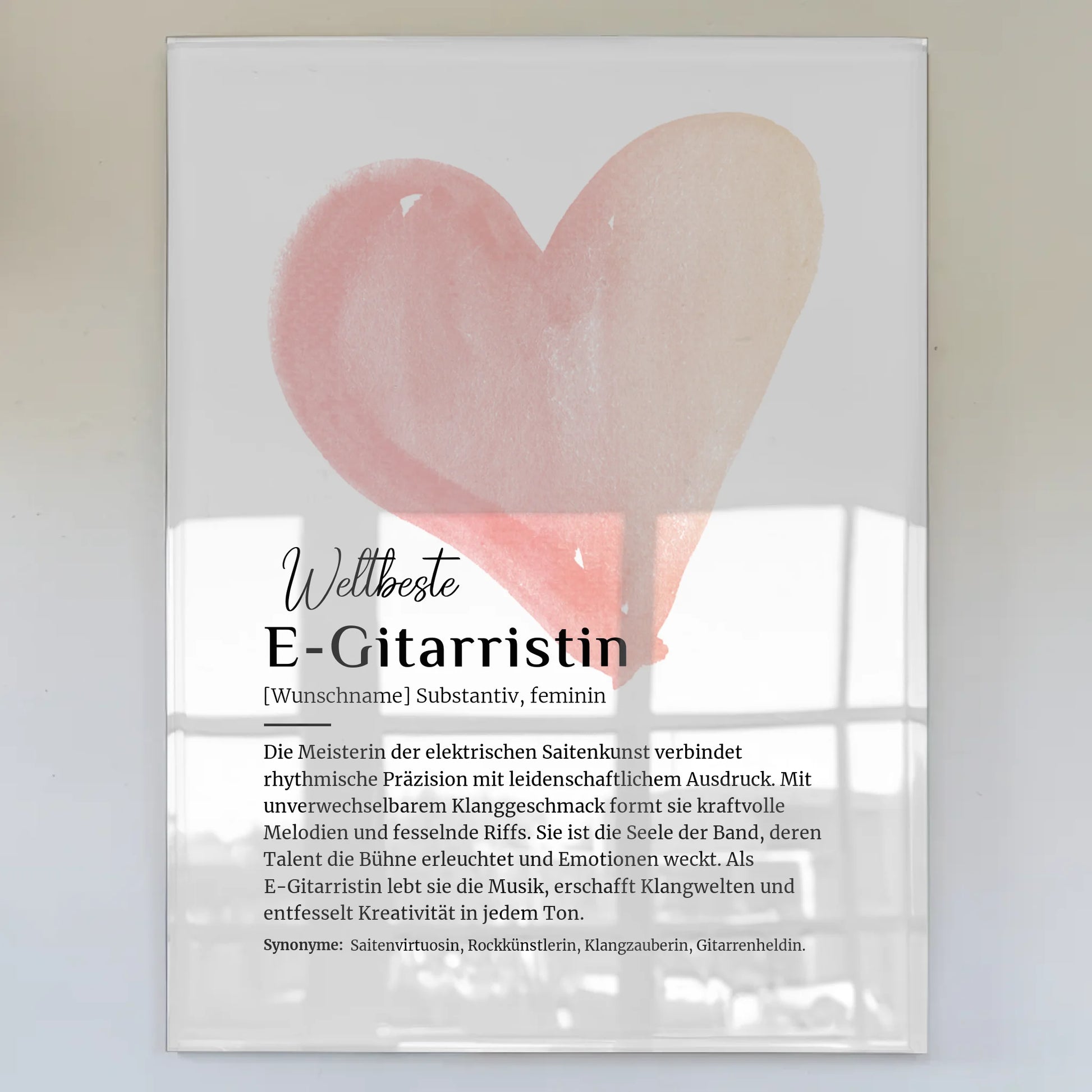 Acrylglas Bild Poster E-Gitarristin mit Namen Geschenk