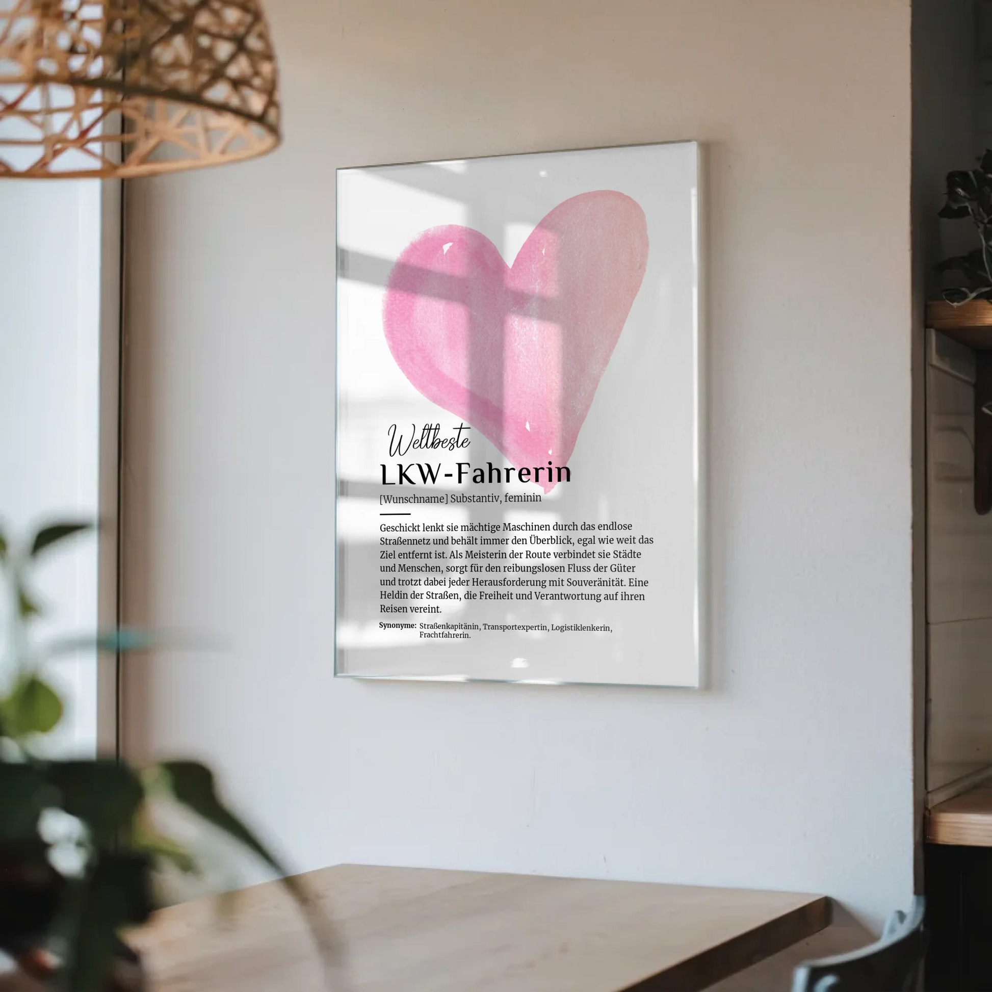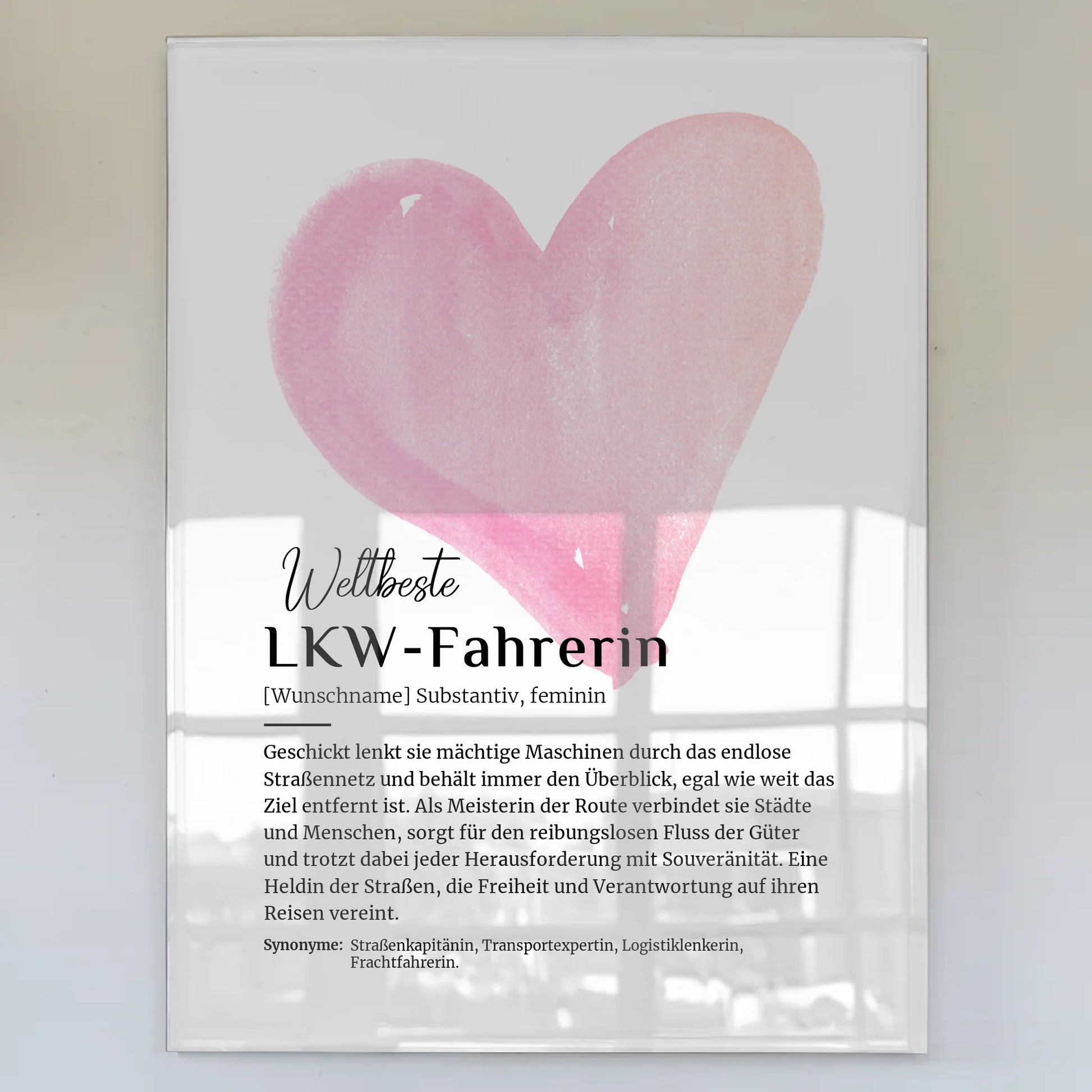Bestelle jetzt Dein persönliches Acrylglas Bild Poster LKW-Fahrerin mit Namen Geschenk und mache einen besonderen Moment unvergesslich!