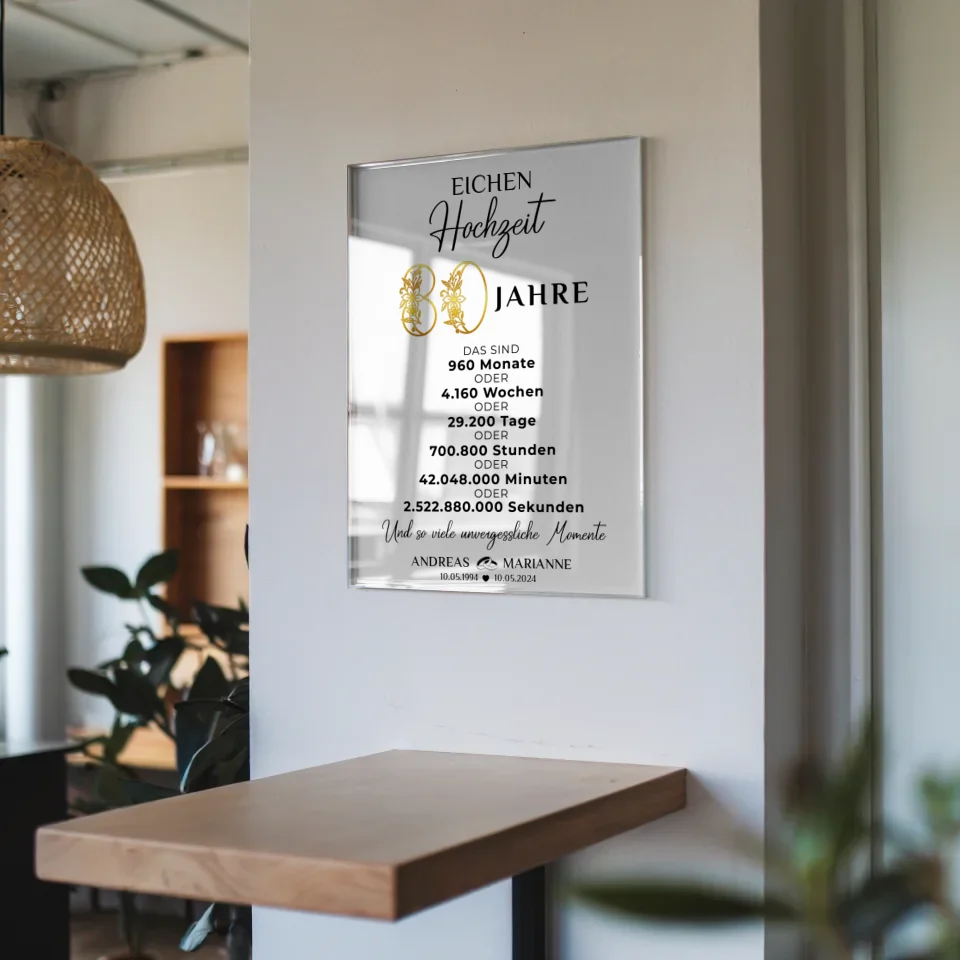 Acrylglas Bild zur Eichenhochzeit Geschenk Momente mit Namen Wunschtext