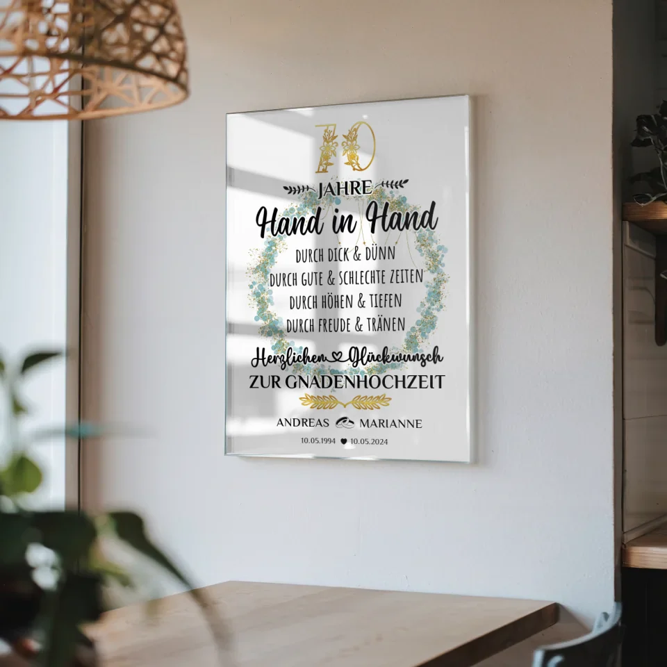 Acrylglas Bild zur Gnadenhochzeit 70 Hochzeitstag mit Namen