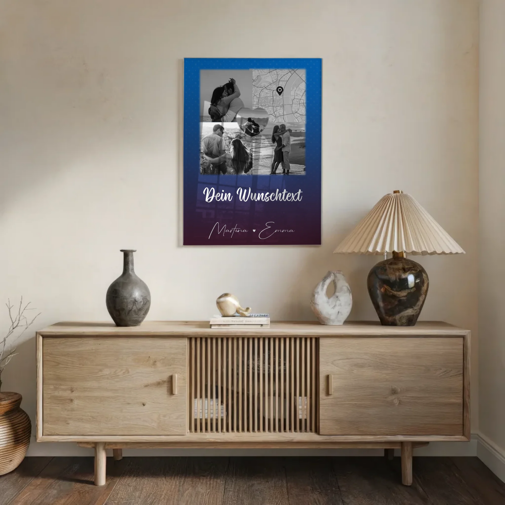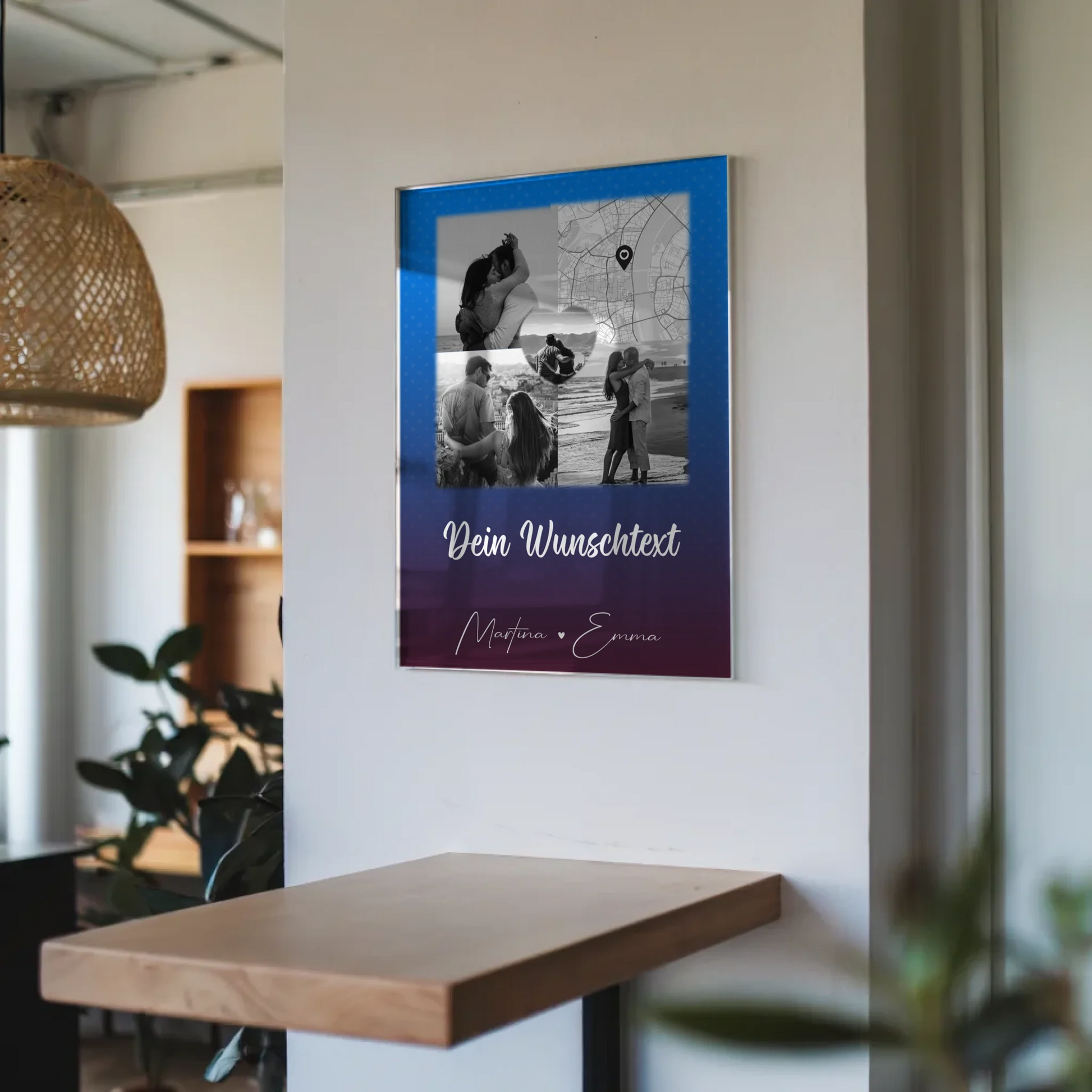 Überrasche deinen Partner mit einem einzigartigen und emotionalen Geschenk, das eure Liebe perfekt widerspiegelt. Das Acrylglas Mit Foto 3 Fotos 1 Herz Foto Karte Wunschtext Te iubesc Liebe auf Rumänisch ist die ideale Wahl, um eure schönsten Momente festzuhalten und sie auf eine elegante Weise zu präsentieren. Du kannst dieses besondere Geschenk ganz individuell gestalten: Füge 4 Fotos hinzu, schreibe einen persönlichen Spruch oder Wunschtext, und wähle eine Karte mit einem besonderen Ort und Namen, um eure Geschichte zu erzählen. Das Design trägt den schönen Spruch „Hand In Hand Ein Leben Lang“, der eure Verbindung symbolisiert. Dieses personalisierte Acrylglas ist perfekt für Paare, die ihre Liebe feiern möchten, und eignet sich hervorragend als Valentinstagsgeschenk. Zeige deinem Partner, wie viel er dir bedeutet, und schaffe ein unvergessliches Erinnerungsstück, das für immer bleibt.