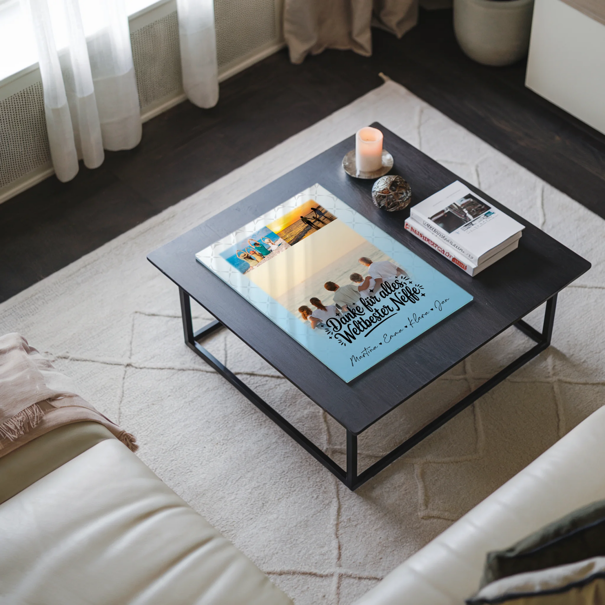 Überrasche deine Neffen mit einem einzigartigen und liebevoll gestalteten Geschenk: Das Acrylglas Mit Foto 3 Fotos Beste Nichte Danke Für Alles personalisiertes Geschenk. Dieses stilvolle Acrylglas vereint drei deiner schönsten Fotos, einen individuellen Wunschtext oder Spruch sowie die Namen deiner Neffen – perfekt, um deine Wertschätzung auf eine besondere Art zu zeigen. Das Design trägt den schönen Spruch: „Danke für alles, weltbeste Nichte“, der jedem Neffen zeigt, wie sehr du ihn schätzt. Du kannst bei der Gestaltung ganz nach deinem Geschmack vorgehen: Wähle deine drei Lieblingsfotos, füge einen persönlichen Spruch oder Wunschtext hinzu und nenne die Namen deiner Neffen. Optional kannst du auch eine kreative Fotocollage für Neffe erstellen, um das Geschenk noch einzigartiger zu machen. Dieses personalisierte Acrylglas ist für jeden Anlass geeignet – sei es Geburtstag, Weihnachten, Jubiläum oder einfach nur, um Danke zu sagen. Es ist ein emotionales Geschenk, das garantiert für Freude sorgt und lange in Erinnerung bleibt. Zeige deinem Neffen, wie viel er dir bedeutet, mit einem individuellen und hochwertigen Geschenk, das er immer wieder gerne anschauen wird.