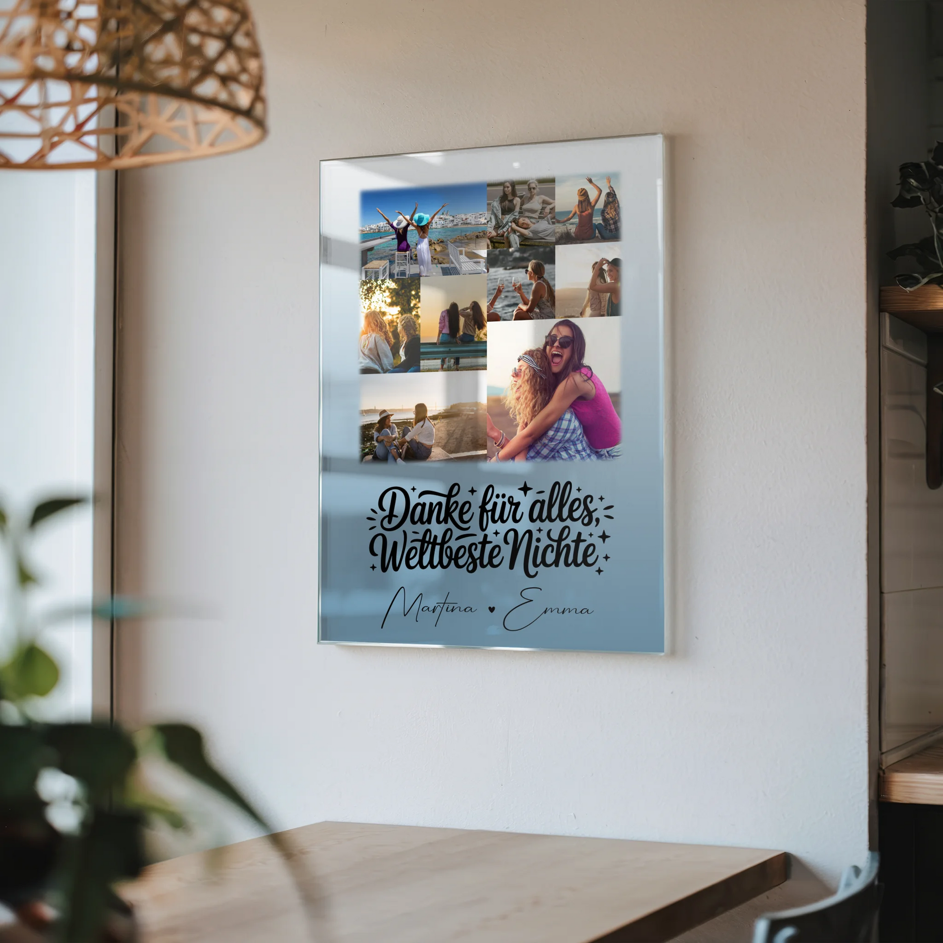 Überrasche deine Nichte mit unserem einzigartigen Acrylglas Mit Foto 9 Fotos Beste Nichte Danke Für Alles personalisiertes Geschenk. Dieses stilvolle Acrylglas ist die ideale Fotocollage für Nichte, die deine Wertschätzung auf besondere Weise zeigt. Du kannst dieses Geschenk ganz individuell gestalten, indem du bis zu 9 Fotos, einen eigenen Spruch oder Wunschtext sowie die Namen deiner Nichte hinzufügst. Das Design ist mit dem liebevollen Spruch „Danke für alles, weltbeste Nichte“ versehen, der deine Dankbarkeit perfekt zum Ausdruck bringt. Ob Geburtstag, Weihnachten, Jubiläum oder einfach nur so – dieses personalisierte Acrylglas ist für jeden Anlass geeignet und sorgt garantiert für leuchtende Augen. Zeige deiner Nichte, wie viel sie dir bedeutet, und verschenke ein einzigartiges, personalisiertes Geschenk, das sie immer an eure besonderen Momente erinnert. Mit dieser Fotocollage für Nichte machst du aus einem gewöhnlichen Geschenk etwas ganz Persönliches und Unvergessliches.