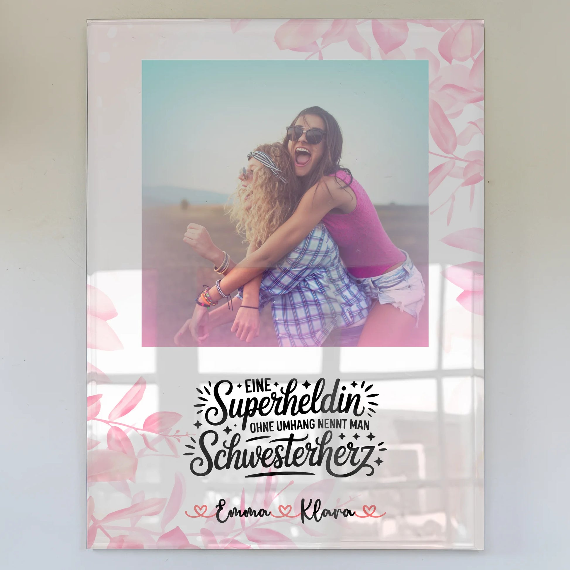 Gestalte jetzt dein individuelles Acrylglas Wandbild Fotocollage Lehrerin echte Heldin Mit Foto, Namen & Spruch, lade dein Foto hoch, wähle Hintergrund und Text und sichere dir ein emotionales Unikat, das deine Schwester zum Geburtstag begeistert.