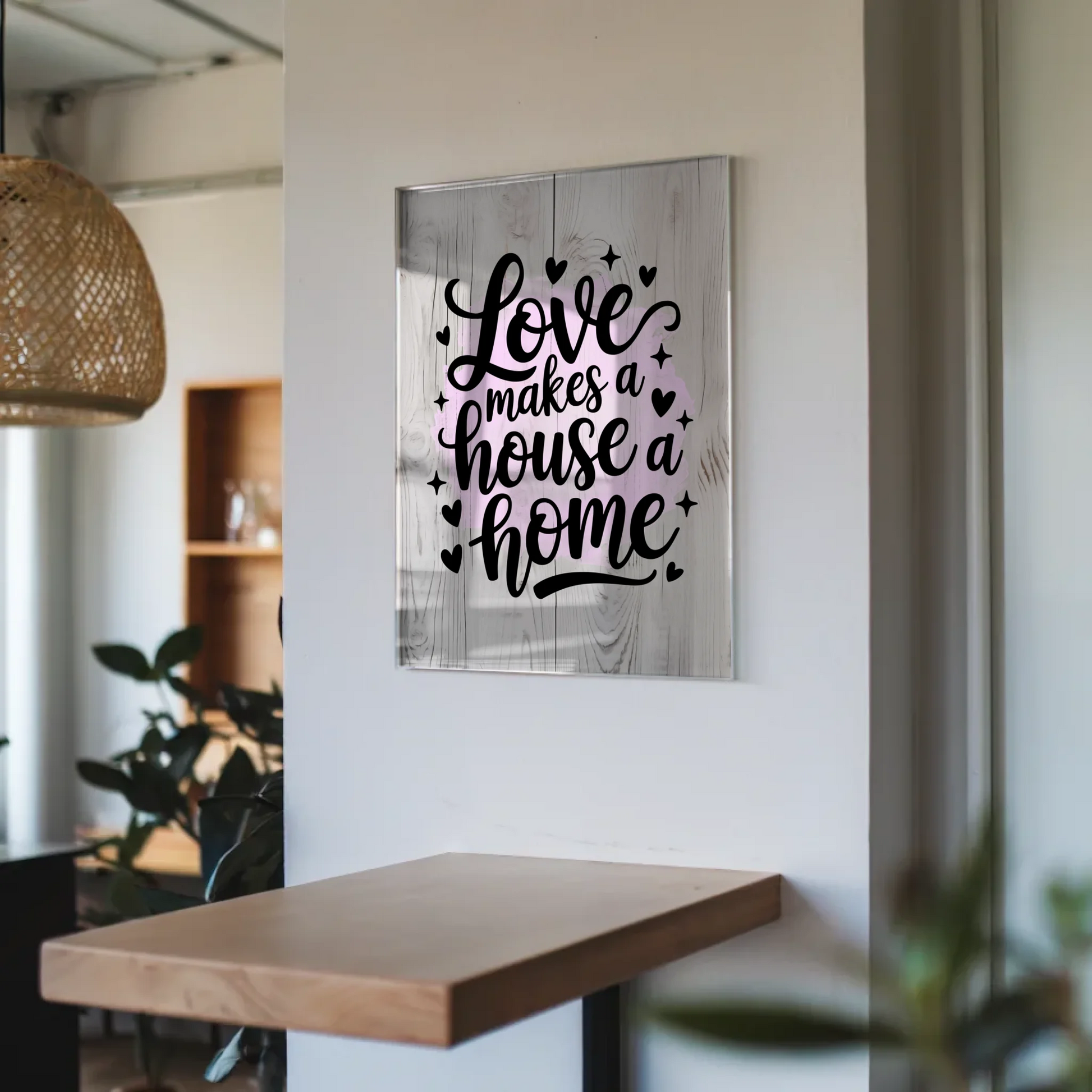 Entdecke das perfekte Geschenk fĂŒr jeden Anlass mit unserem Acrylglas Wandbild. Der inspirierende Spruch 'Love makes a house a home' bringt WĂ€rme und Geborgenheit in jedes Zuhause. Dieses personalisierbare Kunstwerk ermöglicht es dir, das Hintergrundbild nach deinen WĂŒnschen zu gestalten und so eine einzigartige Geschenkidee zu kreieren.