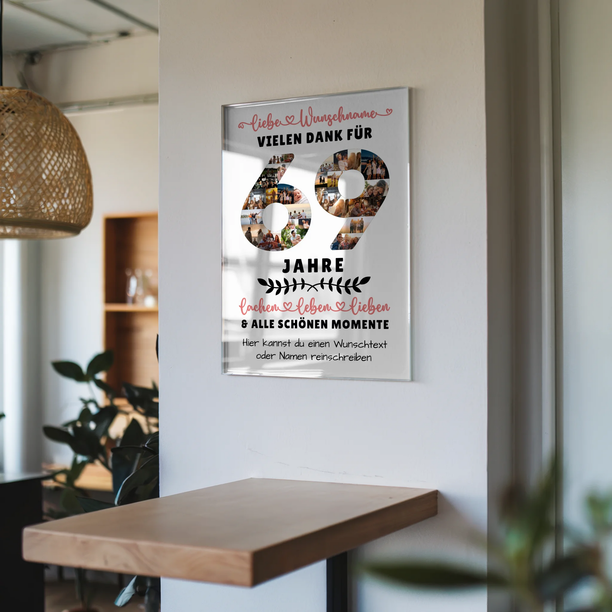 Personalisierte Geschenkidee: Acrylglas Wandbild Personalisiert 69 Geburtstag Für Mama Papa Oma & Opa