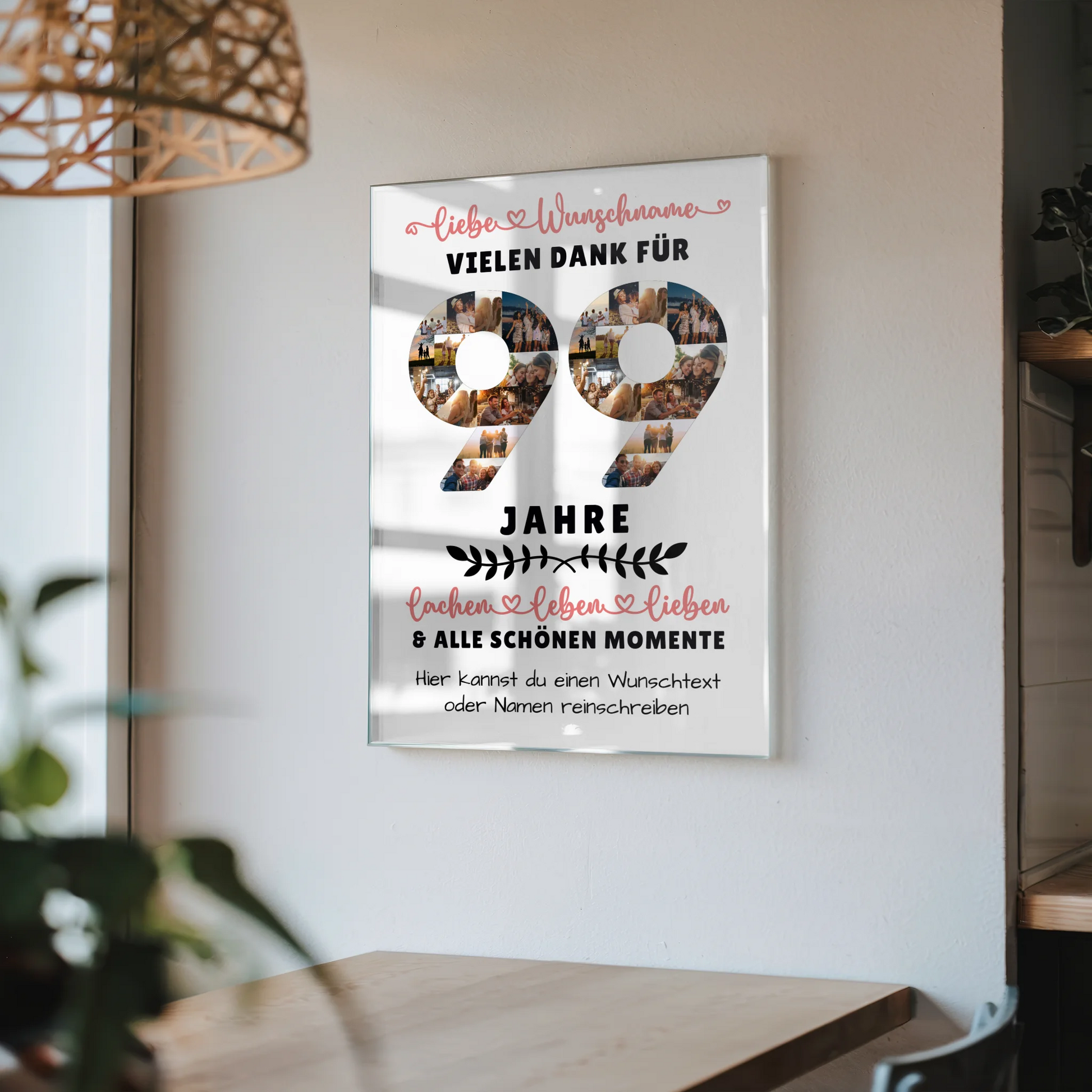 Überrasche deine Liebsten mit einem einzigartigen und persönlichen Geschenk zum 99 Geburtstag – dem Acrylglas Wandbild Personalisiert. Dieses besondere Wandbild ist perfekt, um den besonderen Tag deines Opas, Opas, Papas, Mamas oder anderer Familienmitglieder unvergesslich zu machen. Du kannst das Acrylglas Wandbild Personalisiert ganz individuell gestalten: Füge über 20+ Fotos hinzu, schreibe einen Wunschtext, nenne den Namen des Geburtstagskinds und wähle ein passendes Hintergrundbild. So entsteht ein einzigartiges Geschenk, das die Persönlichkeit und gemeinsame Erinnerungen perfekt widerspiegelt. Das Acrylglas Wandbild Personalisiert ist ideal für den 99 Geburtstag und eignet sich hervorragend für Opa, Oma, Papa, Mama sowie Sohn, Tochter, Bruder, Schwester, beste Freundin, Neffe oder Nichte. Es ist eine elegante Dekoration für jeden Raum und ein emotionaler Blickfang. Zeige deinen Liebsten deine Wertschätzung mit diesem hochwertigen Geschenk – es wird garantiert für Freude sorgen und lange in Erinnerung bleiben. Bestelle jetzt dein personalisiertes Acrylglas Wandbild Personalisiert 99 Geburtstag Für Opa Oma Papa & Mama und mache diesen besonderen Tag unvergesslich!