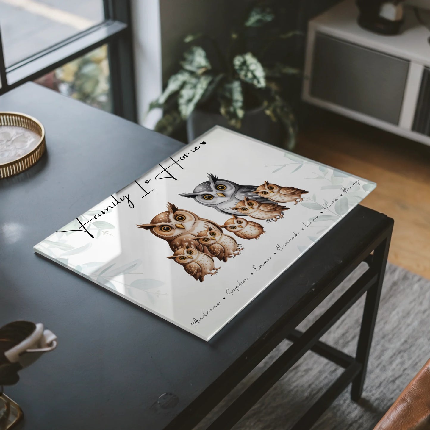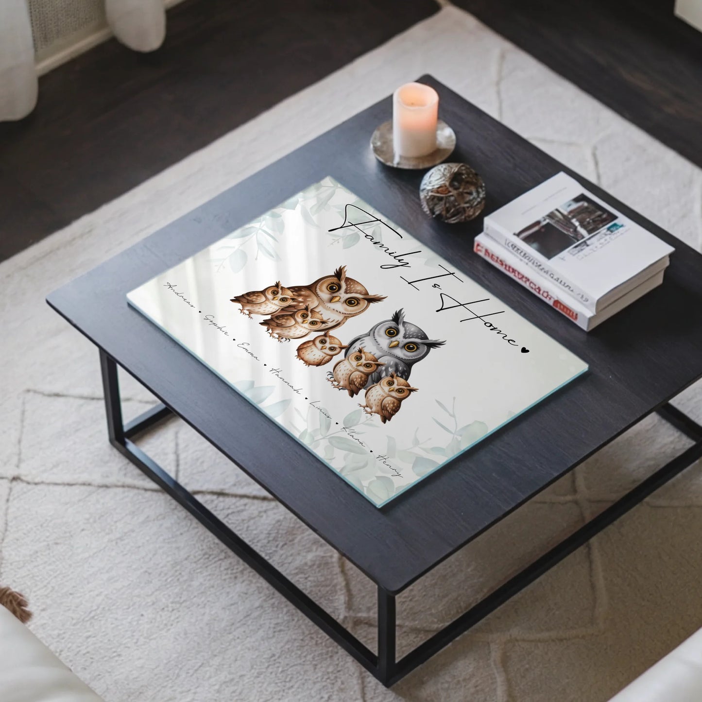 Personalisierte Geschenkidee: Acrylglas Wandbild Magnetisch mit Eulen Familienporträt