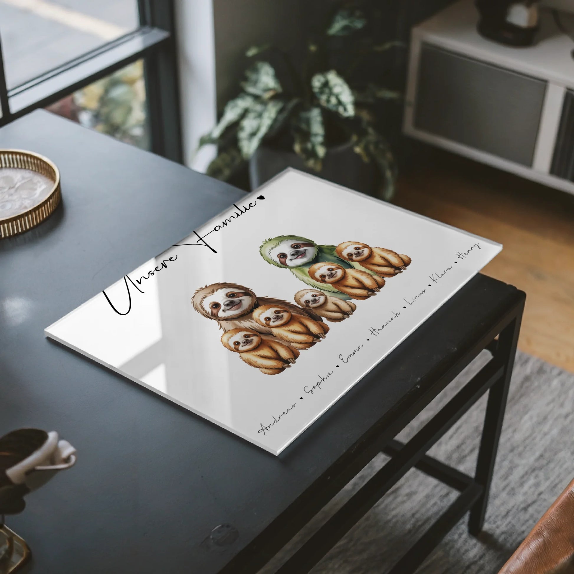 Acrylglas Wandbild Personalisiert magnetisch Faultier Familienporträt Geschenk für Oma Opa Mama Papa