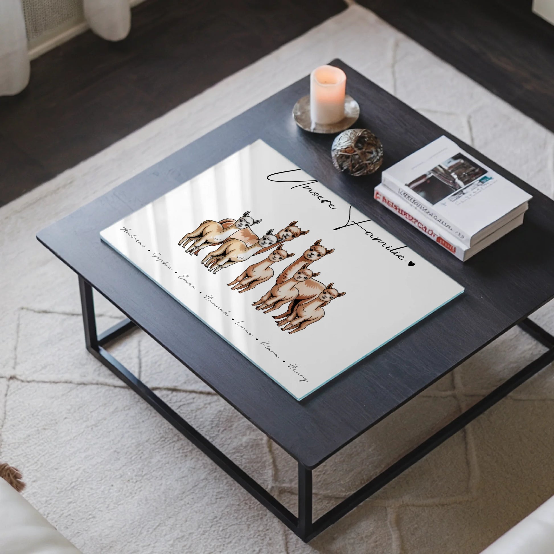 Acrylglasbild Personalisiert magnetisch Alpaka Familienporträt Geschenk für Papa Mama Oma Opa