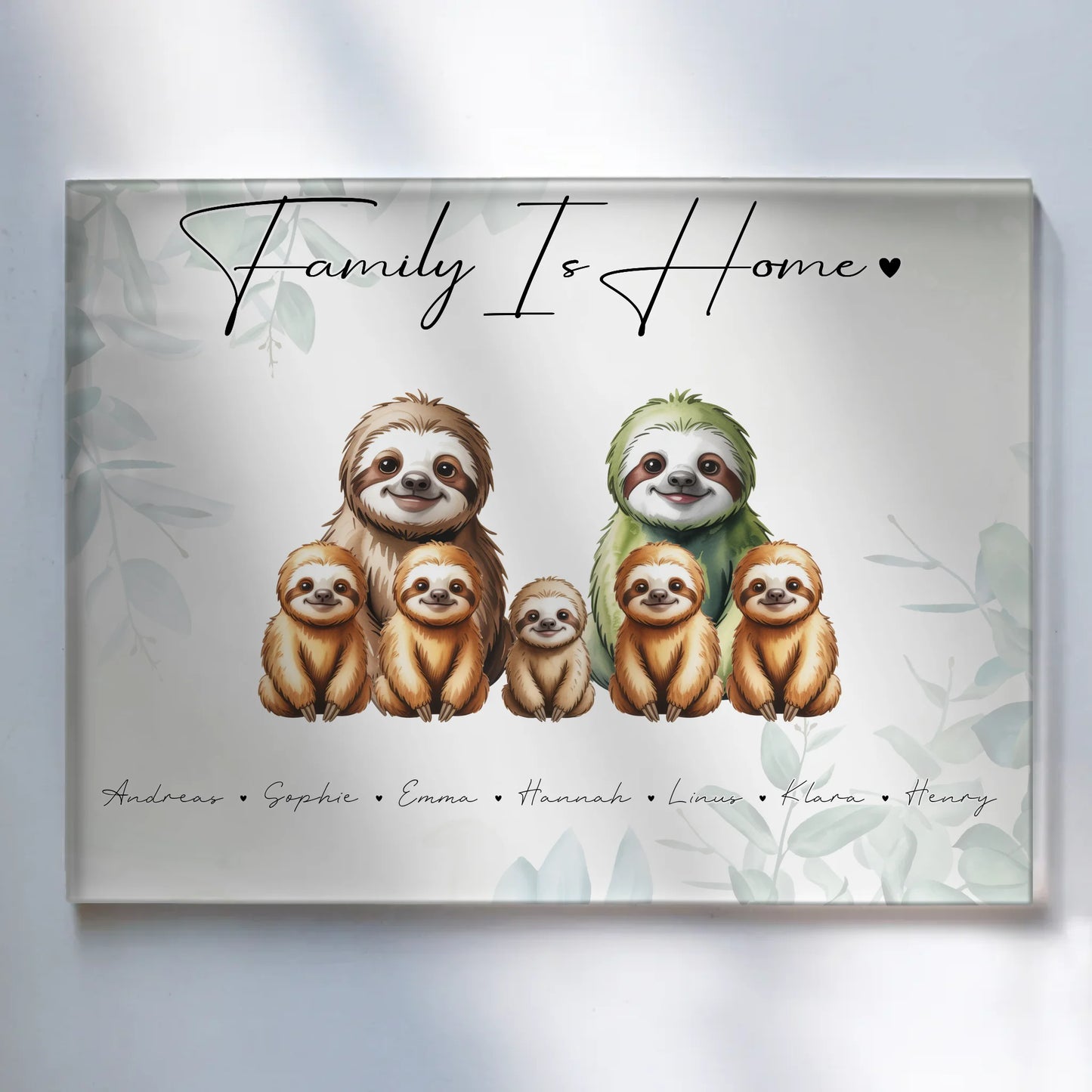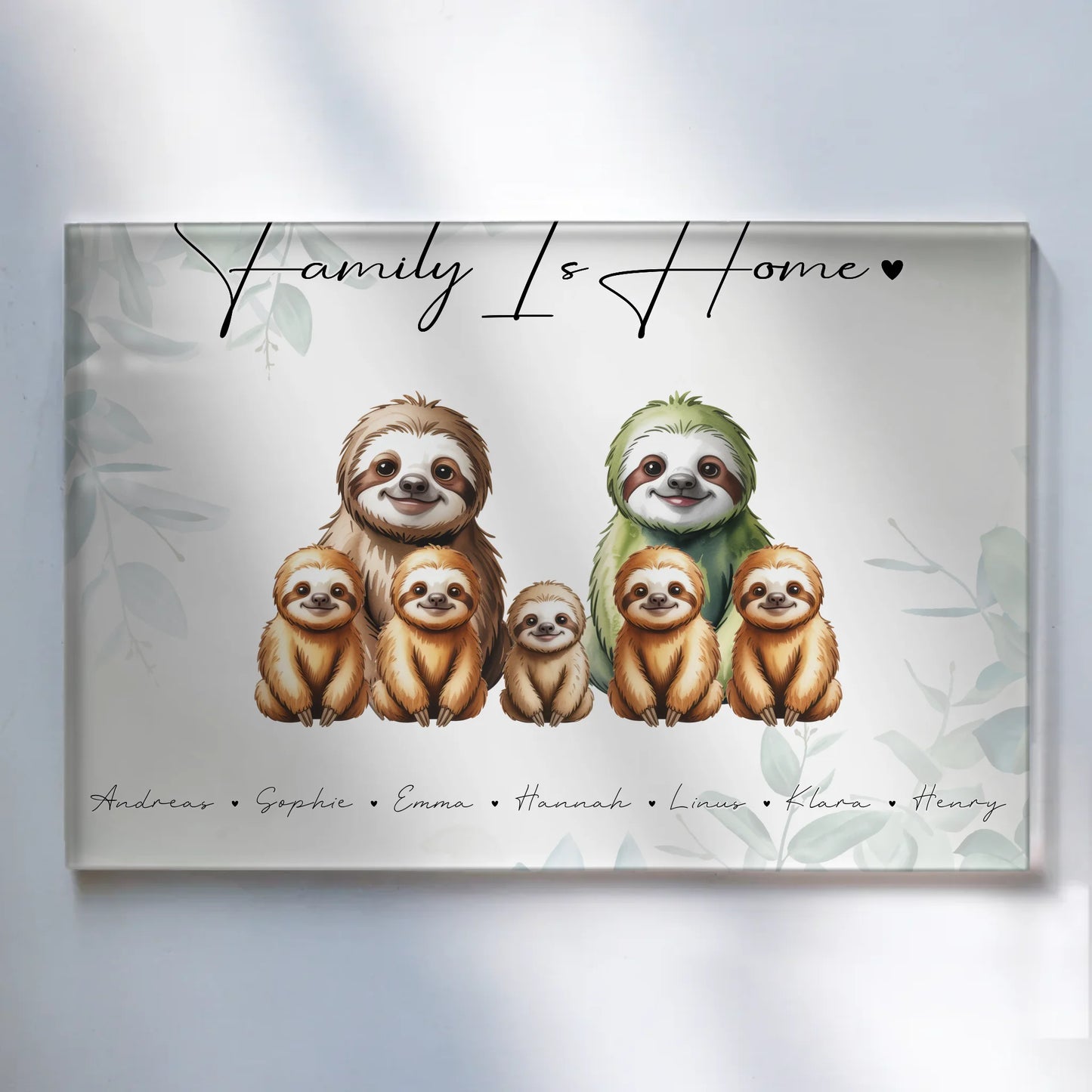 Acrylglasbild Personalisiert magnetisch Faultier Familienporträt Geschenk für Mama Papa Oma Opa