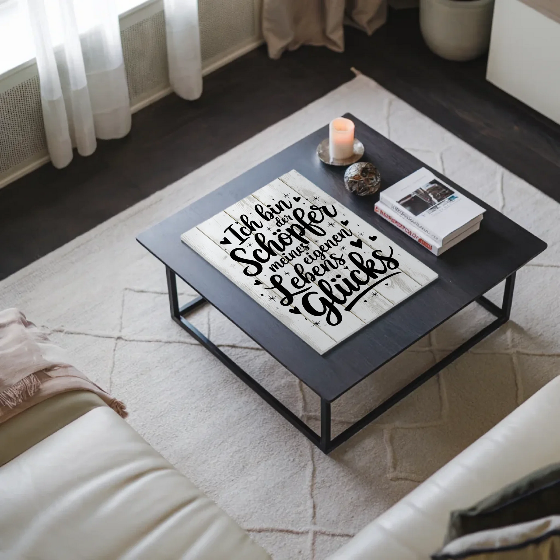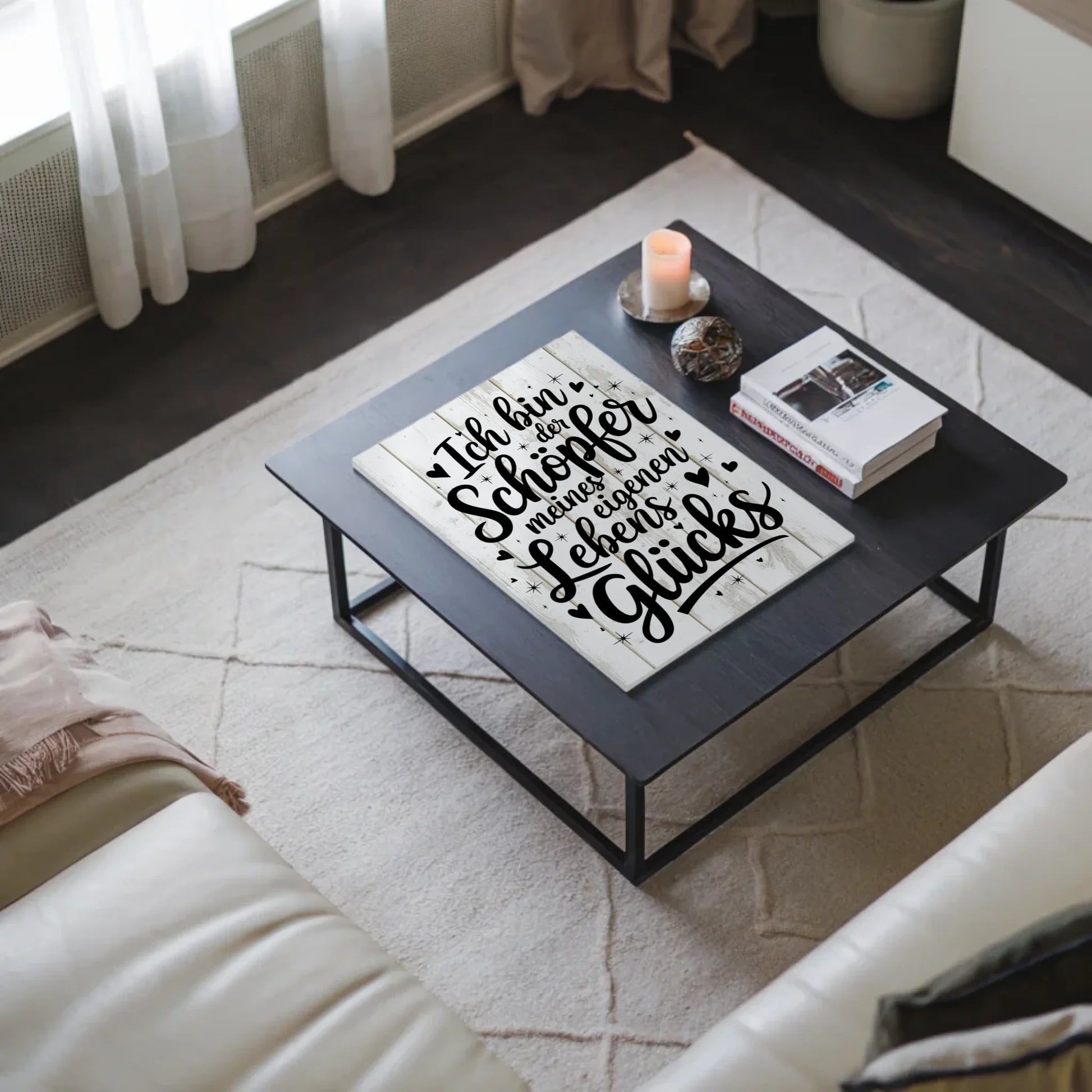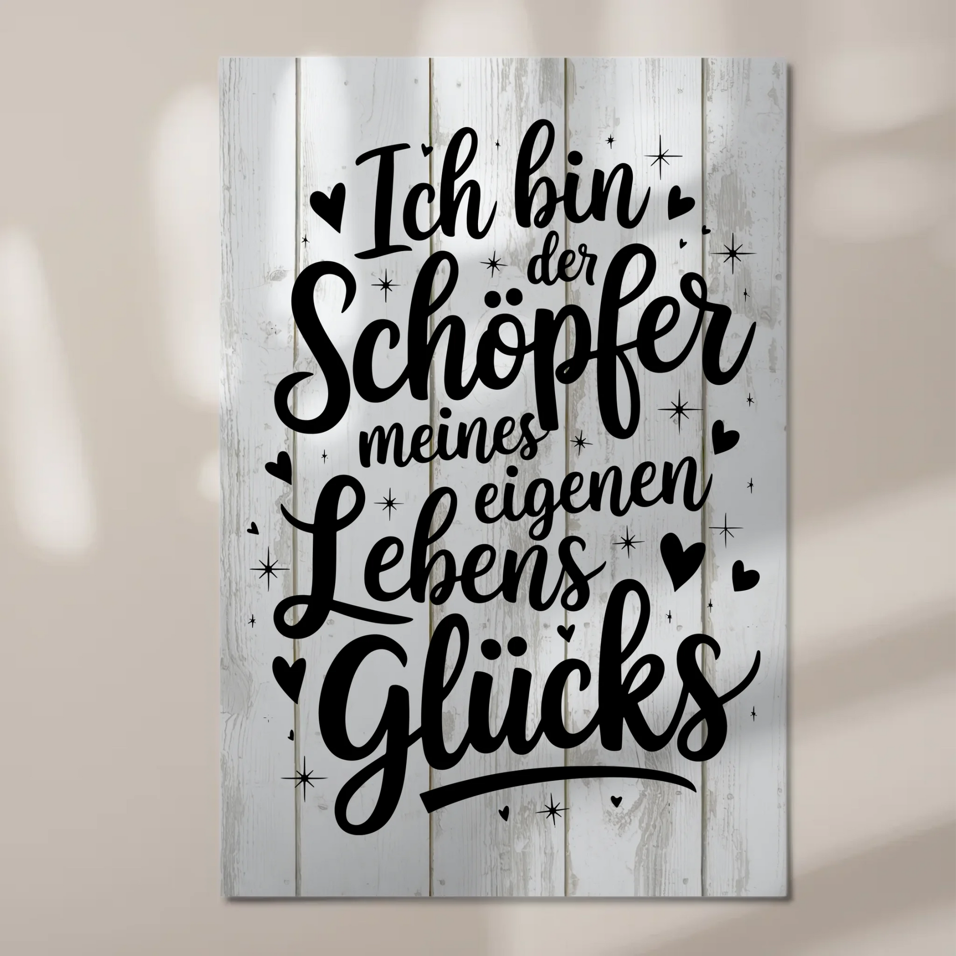 Der kraftvolle Spruch 'Ich bin der Schöpfer meines eigenen Lebensglücks' erinnert Dich daran, dass Du die Kontrolle über Dein Leben hast und Deine eigene Realität gestalten kannst. Diese positive Affirmation hilft Dir, jeden Tag mit neuer Motivation zu starten und Deine Ziele zu erreichen.