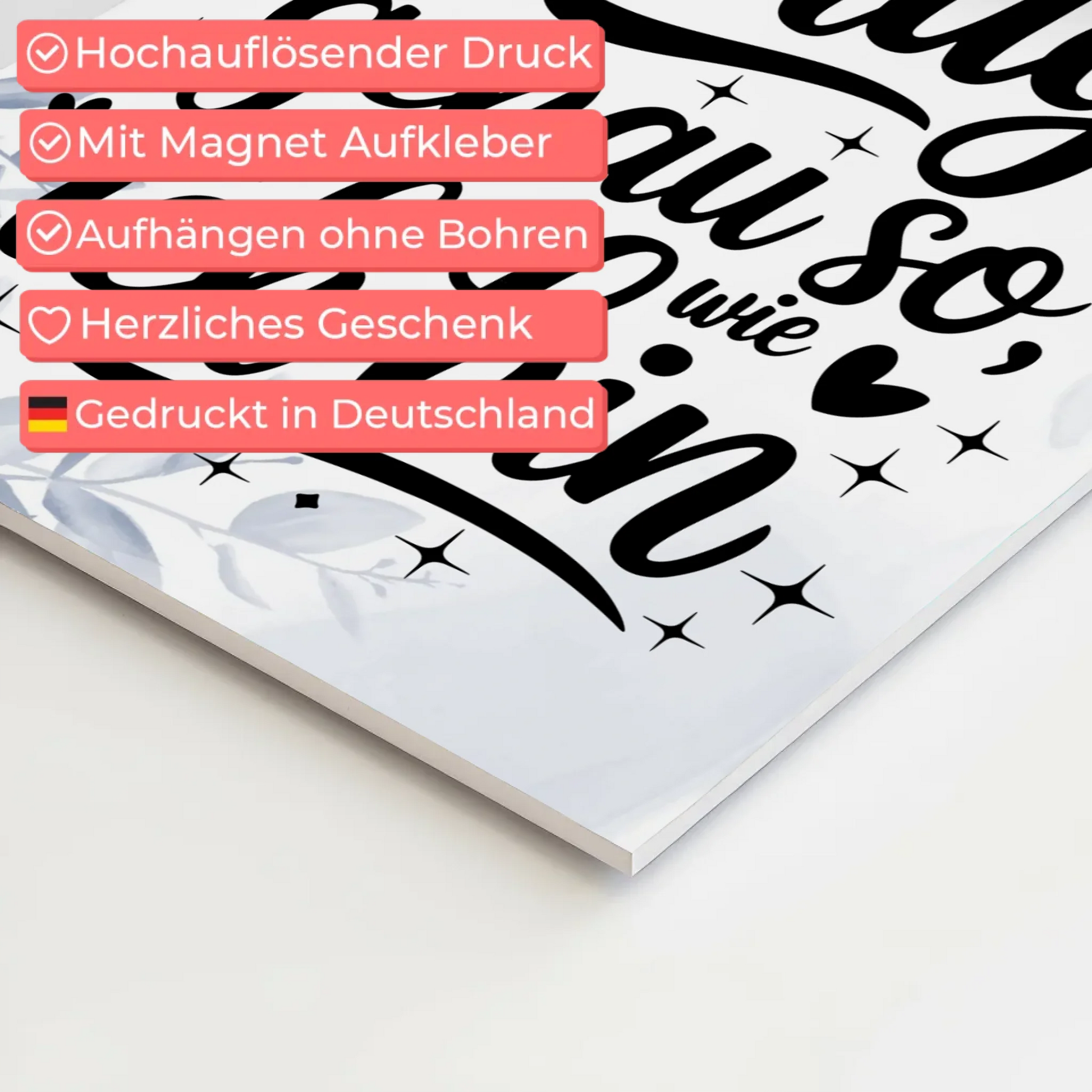 Mit dem Affirmations Magnet Poster Fotoboard kannst du den Hintergrund nach deinen Wünschen anpassen und so ein einzigartiges Kunstwerk schaffen, das dich jeden Tag daran erinnert: 'Ich bin genug, genau so, wie ich bin'. Diese kraftvolle Botschaft unterstützt dich dabei, Selbstvertrauen aufzubauen und positive Affirmationen in deinen Alltag zu integrieren.
