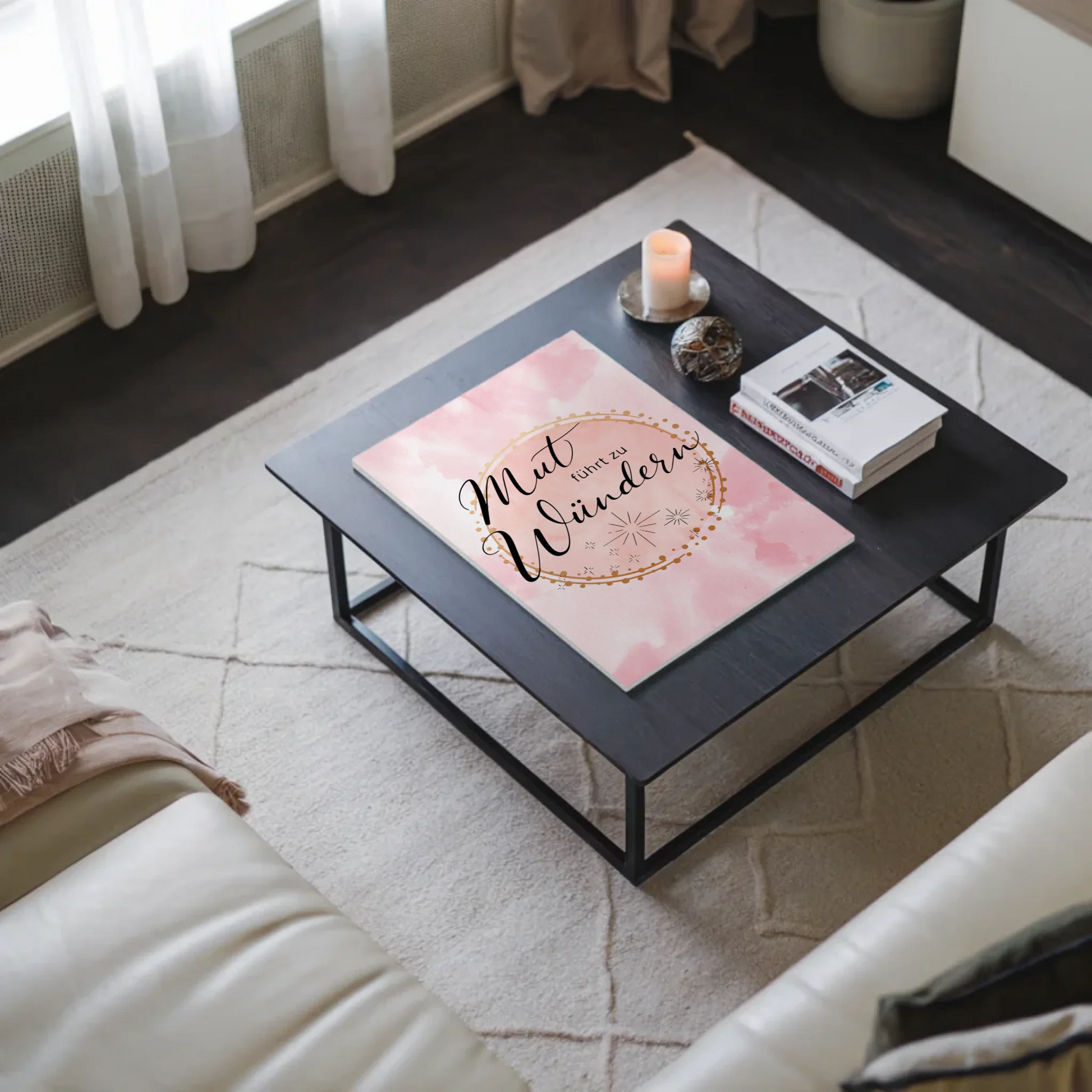Entdecke das einzigartige Affirmation Magnet Poster Spruch Mut führt zu Wundern, das nicht nur ein echter Hingucker ist, sondern auch täglich für Motivation und positive Energie sorgt. Dieses personalisierbare Geschenk ist perfekt für jeden Anlass und bringt mit seinem schönen Spruch eine inspirierende Botschaft in dein Zuhause.