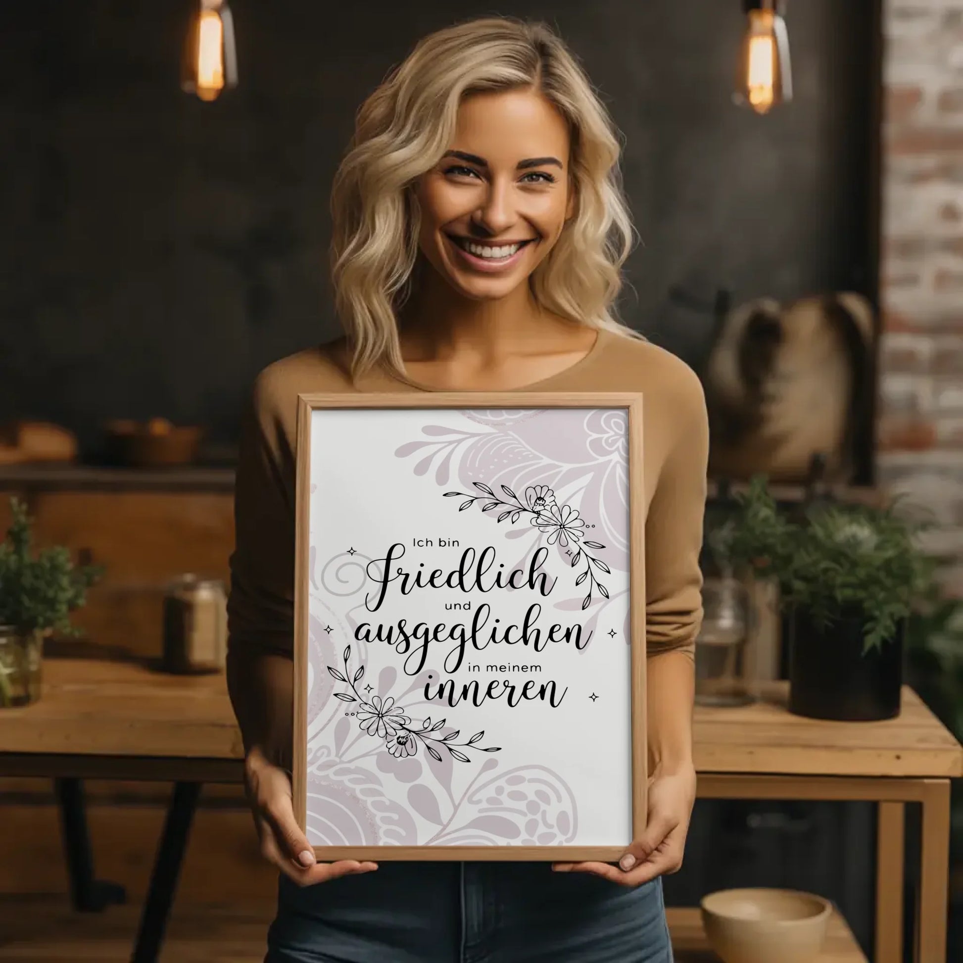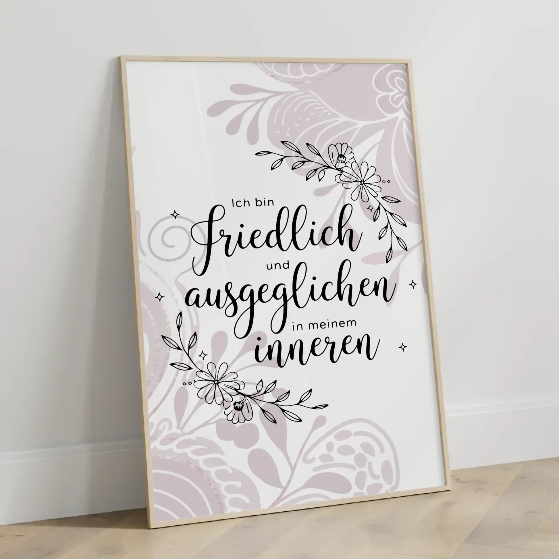 Affirmations Poster Ich bin friedlich und ausgeglichen Inneres