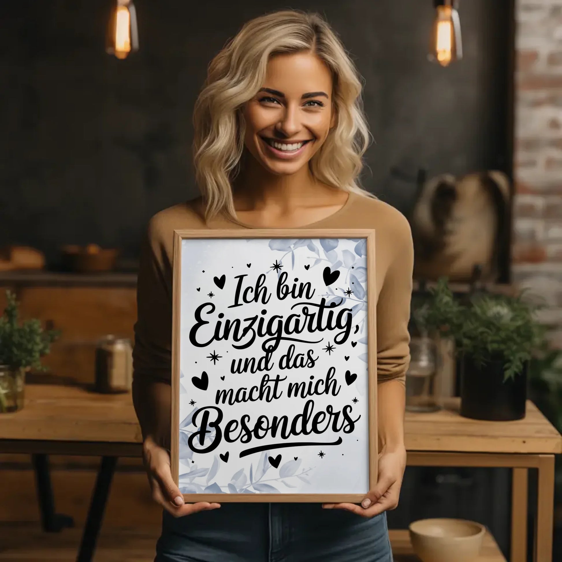 Affirmationsposter Ich bin einzigartig und das macht mich besonders positiv