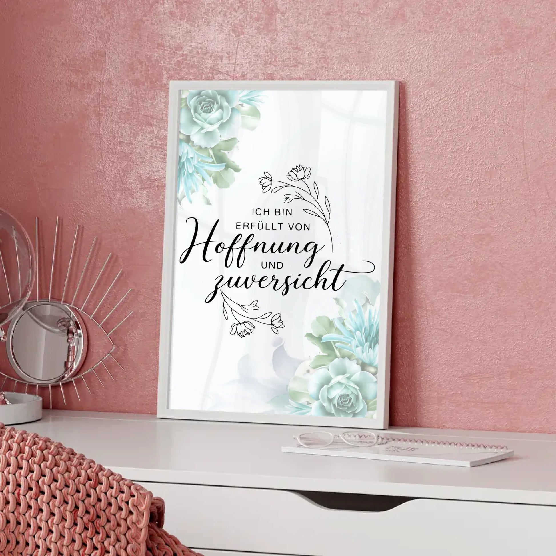 Affirmationsposter Ich bin erfüllt von Hoffnung und Zuversicht