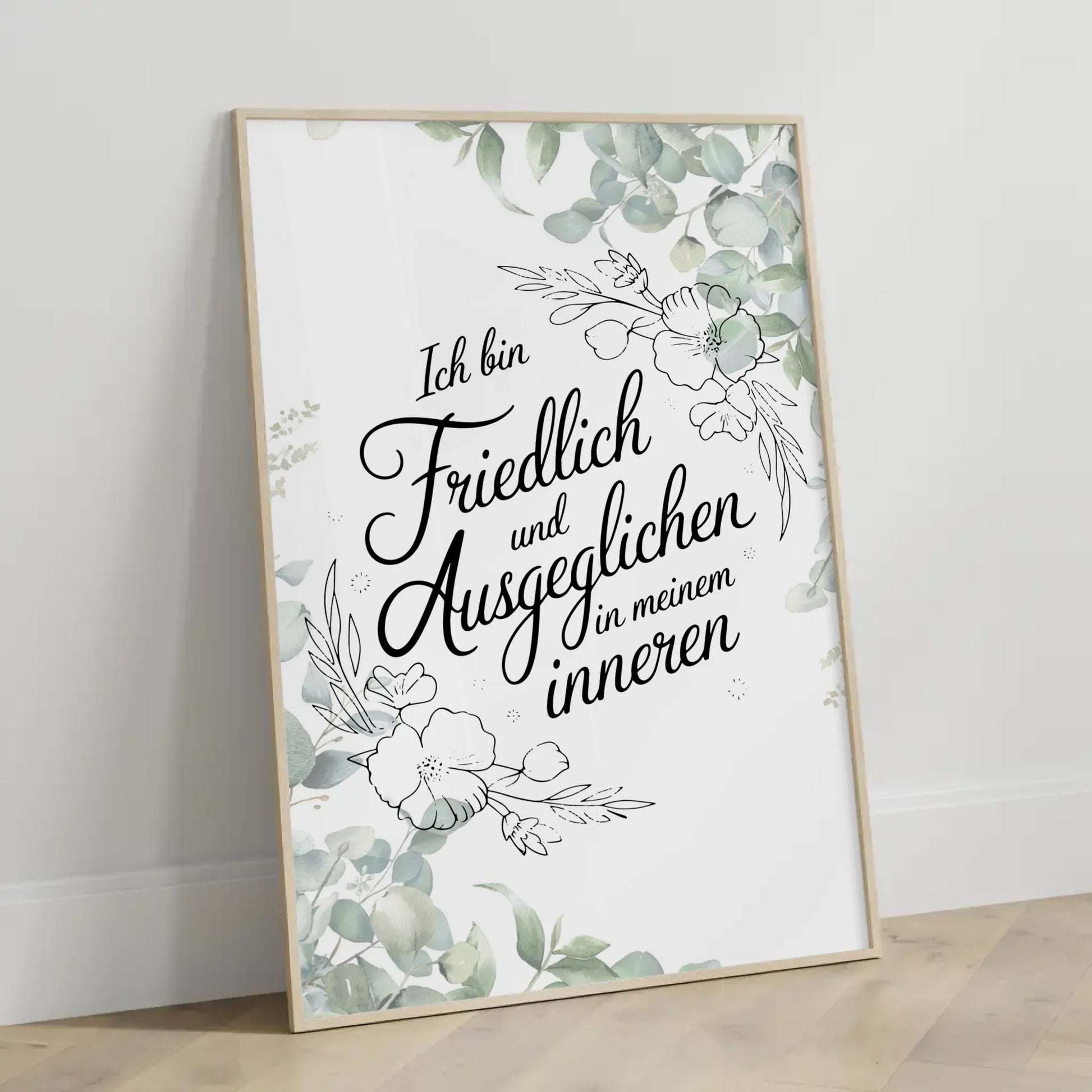Lass dich inspirieren und kreiere deine eigene Motivationsquelle – mit unserem Affirmationsposter Ich bin friedlich ausgeglichen positiv kaufen.