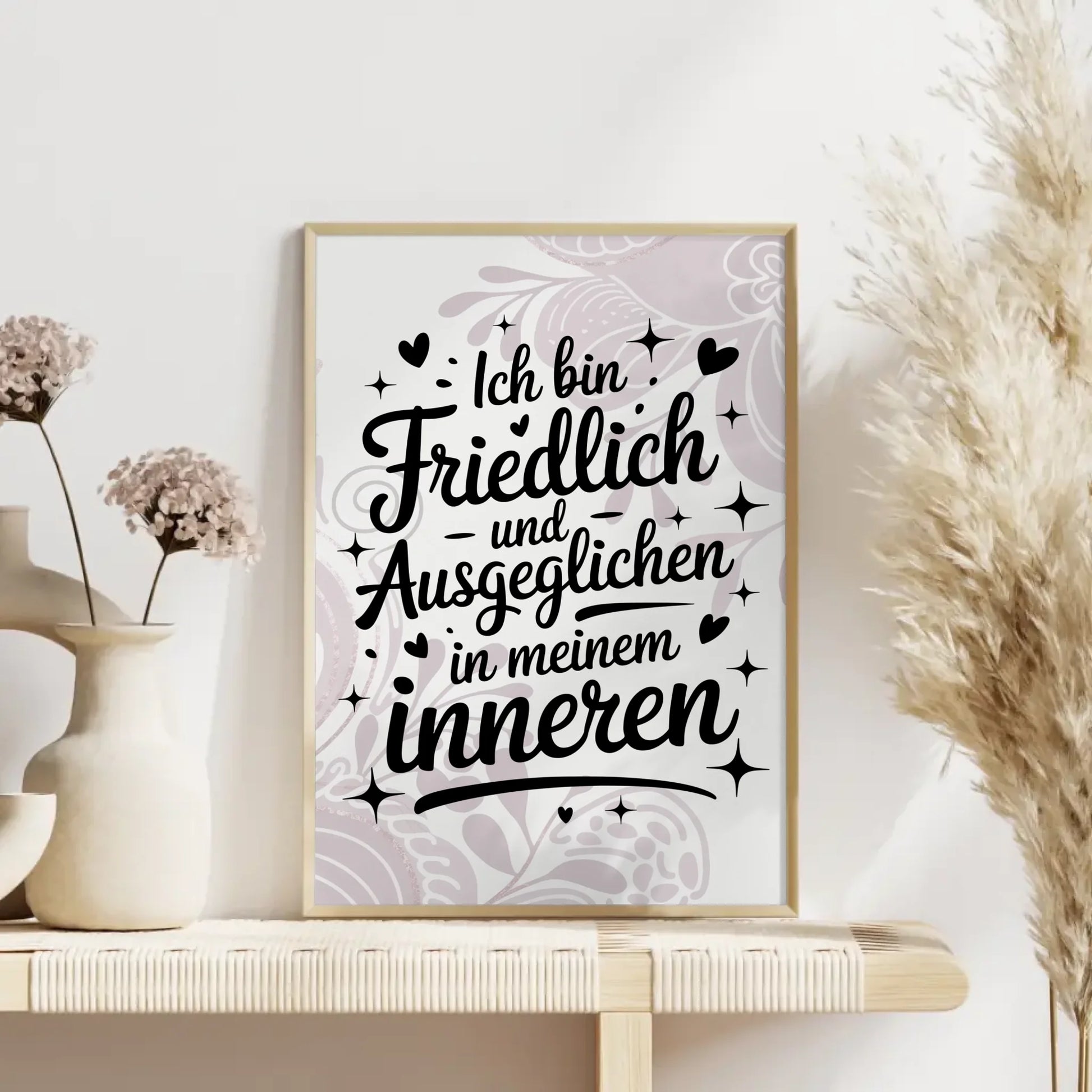 Affirmationsposter Ich bin friedlich und ausgeglichen positiv