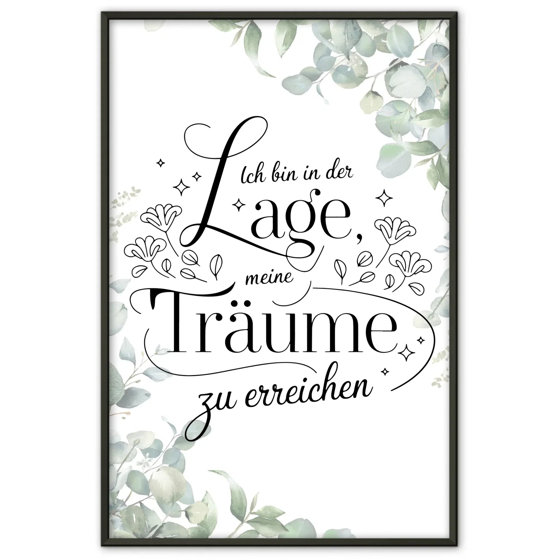 Mit einem schönen Spruch inspiriert es dazu, jeden Tag an sich selbst zu glauben und seine Ziele aktiv zu verfolgen. Lass dich von diesem motivierenden Poster täglich an deine Fähigkeiten erinnern und motiviere dich selbst mit positiver Energie. Hole dir jetzt dein persönliches Affirmationsposter, um stets den Glauben an deine Träume aufrechtzuerhalten!