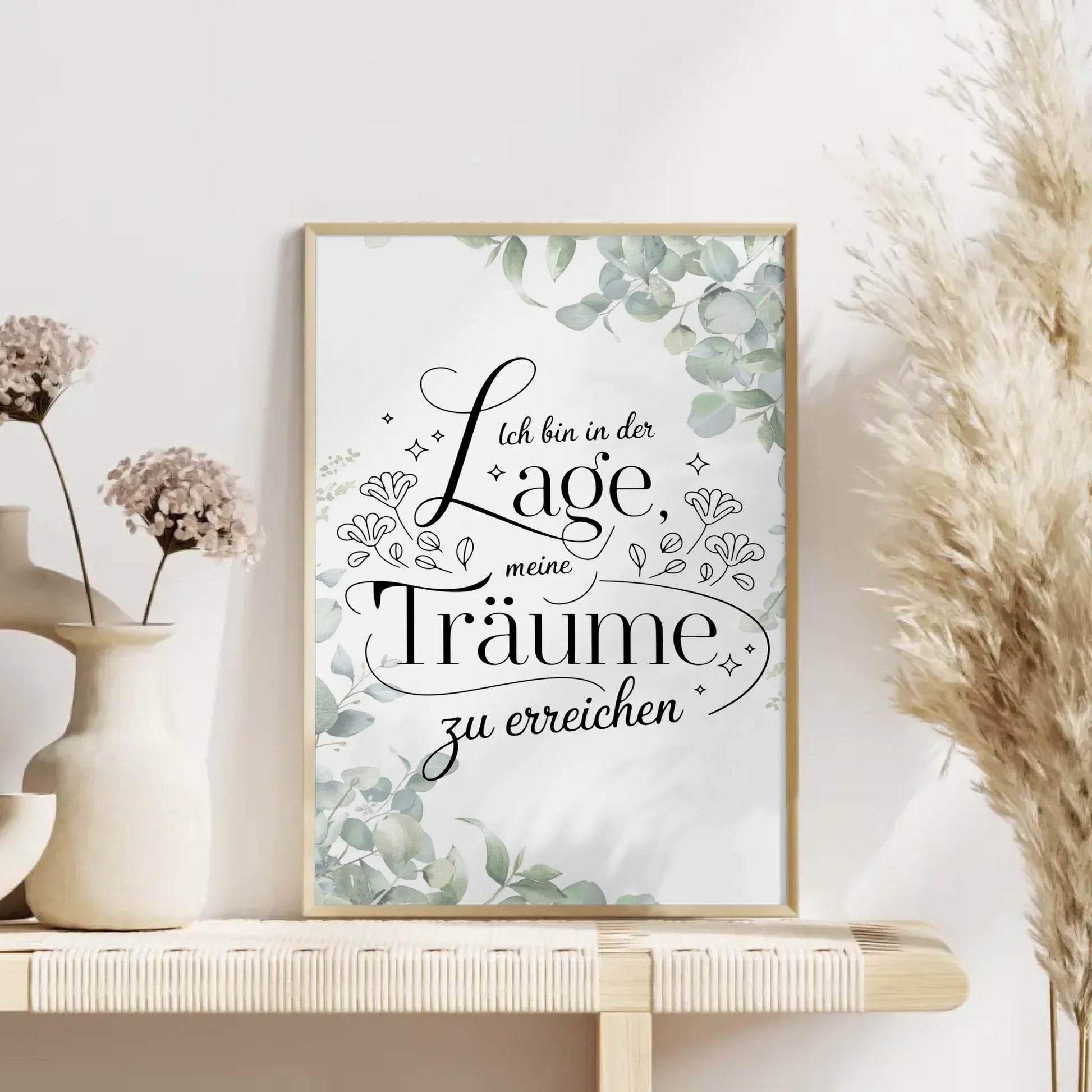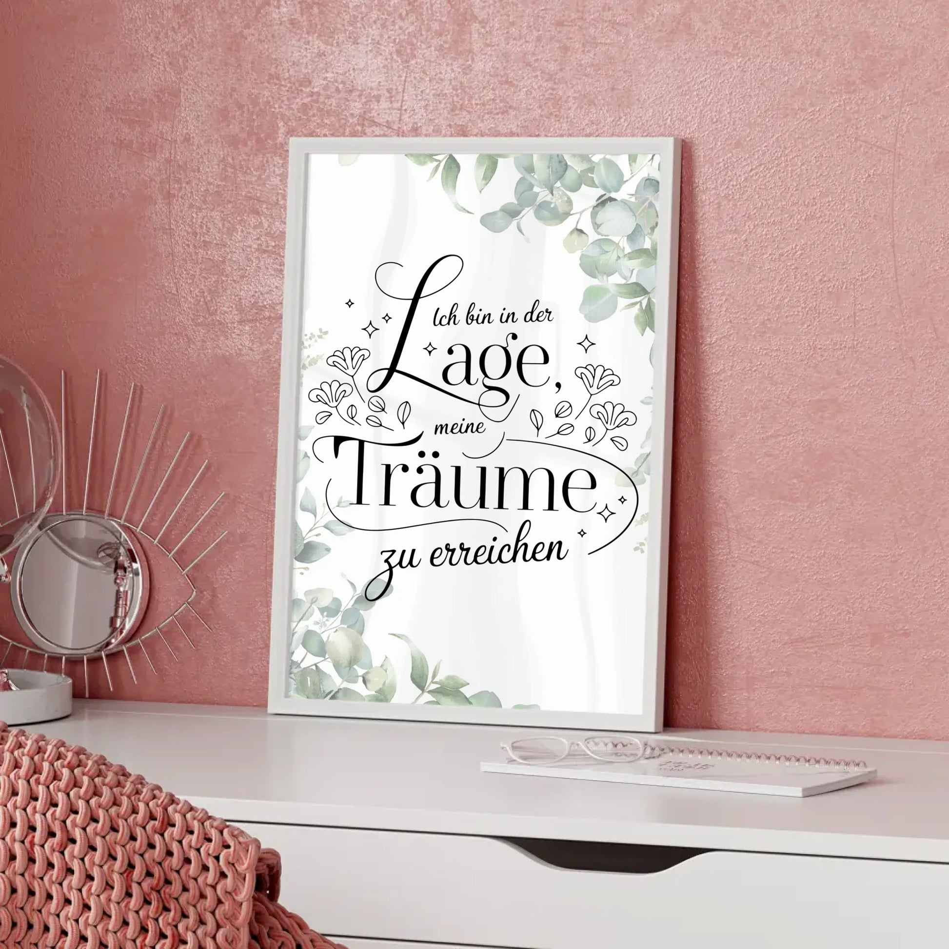 Entdecke unser einzigartiges Affirmationsposter: 'Ich bin in der Lage, positiv zu träumen und meine Träume zu erreichen'. Dieses personalisierte Geschenk bringt Motivationen und positive Affirmationen direkt in dein Zuhause. Du kannst das Hintergrundbild individuell gestalten, sodass es perfekt zu deinem Stil passt. Ideal als Geschenk für Freunde und Familie – ganz gleich Anlass! Ob Geburtstag, Weihnachten oder einfach als kleine Aufmerksamkeit zwischendurch, dieses Affirmationsposter ist die ideale Geschenkidee.