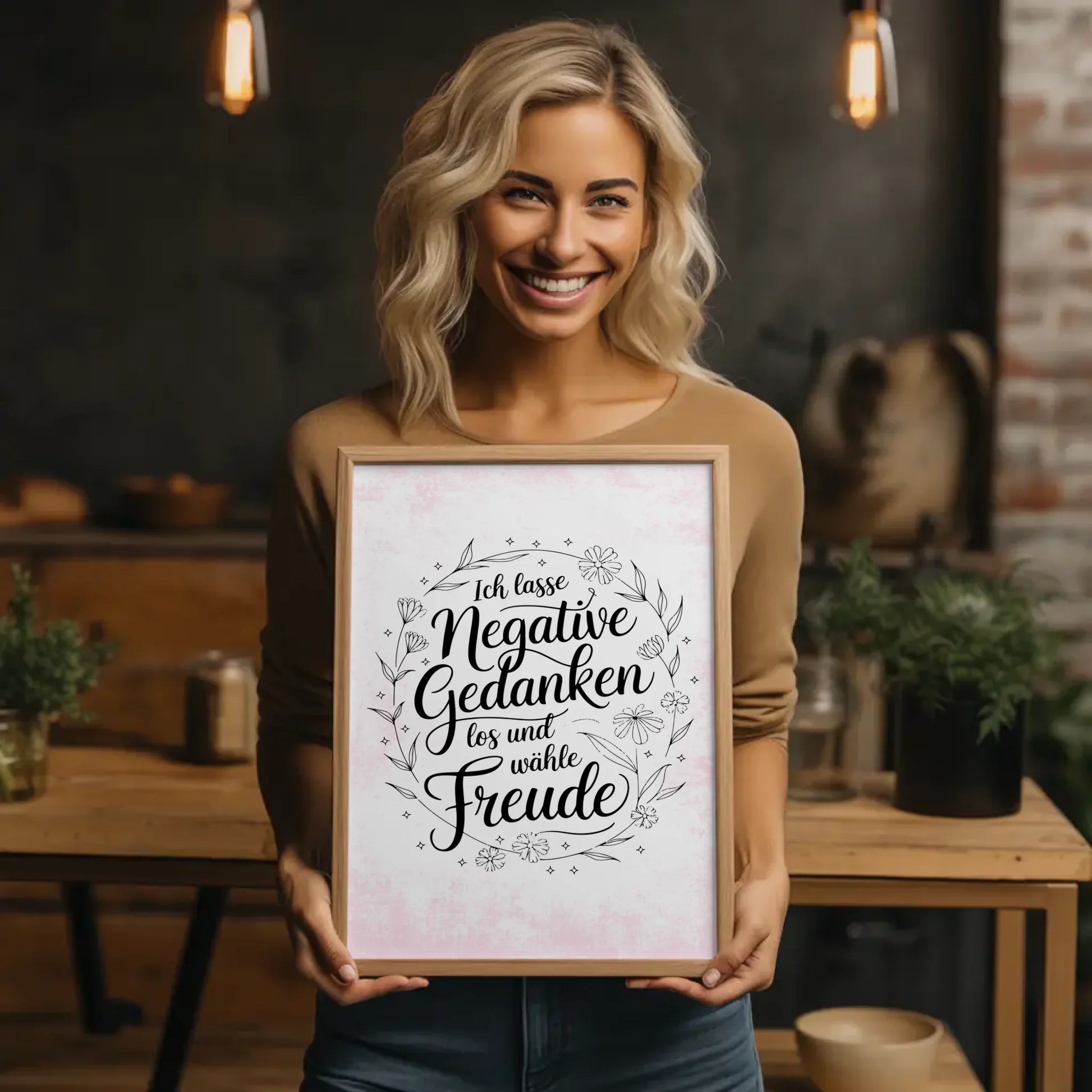 Affirmationsposter – Ich lasse negative Gedanken los, positiv Freude