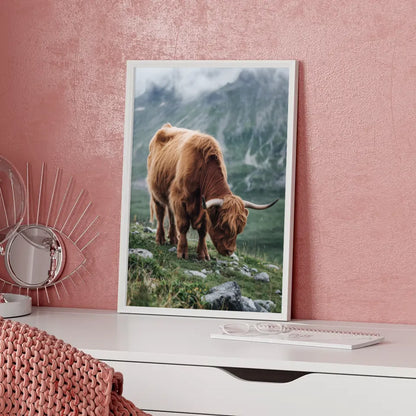 Die faszinierende Darstellung des Berges, der sich inmitten eines Wolkenmeeres erhebt, zieht jeden Blick auf sich. Im Vordergrund sehen Sie einen grasbewachsenen Hang, der mit einigen Nadelbäumen geschmückt ist und den perfekten Rahmen für dieses fesselnde Poster bildet. Fügen Sie Ihrem Zuhause ein Stück Naturkunst hinzu und lassen Sie sich von der ergreifenden Landschaft inspirieren.