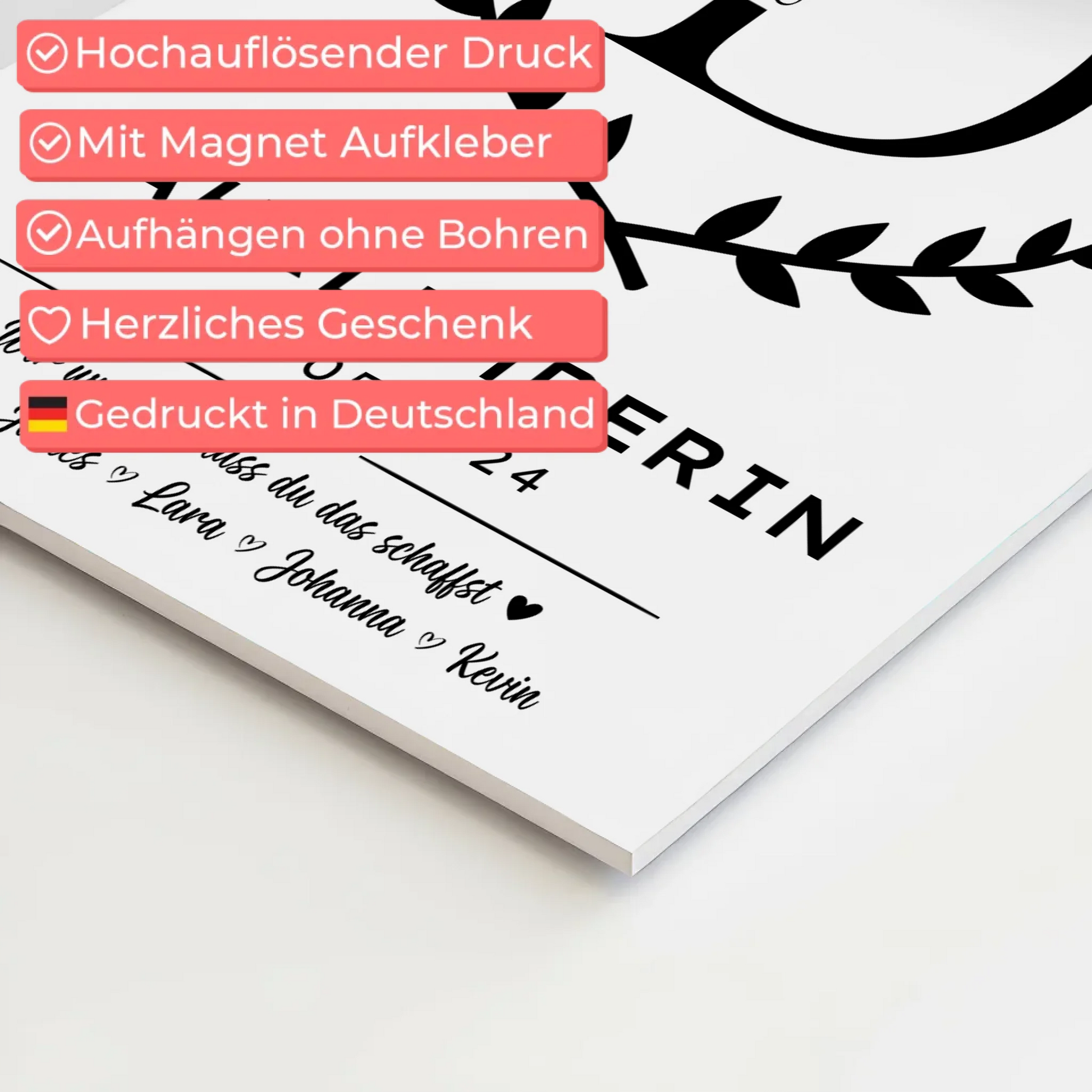Du suchst nach einem einzigartigen und persönlichen Ausbildungsabschluss Geschenk für eine Fahrlehrerin? Unser Aus Ausbildungsabschluss Geschenk Fahrlehrerin Magnet Fotoboard ist die ideale Wahl, um deine Wertschätzung auf kreative Weise zu zeigen. Dieses individuell gestaltbare Magnet Fotoboard eignet sich perfekt als Geschenk zum Abschluss Ausbildung oder als Abschiedsgeschenk, das lange in Erinnerung bleibt. Du kannst das Magnet Fotoboard ganz nach deinen Wünschen personalisieren: Wähle den Initial Buchstabe, füge das Datum sowie einen Wunschtext hinzu, um ein einzigartiges Andenken zu schaffen. Das personalisierte Design macht dieses Geschenk zu einem besonderen Highlight bei jedem Abschied oder Abschluss. Ob für eine engagierte Fahrlehrerin oder als Dankeschön – dieses personalisierte Magnet Fotoboard ist ein originelles und praktisches Präsent, das Freude bereitet. Überrasche deine Fahrlehrerin mit diesem individuellen Geschenk zum Abschluss Ausbildung und zeige deine Anerkennung auf stilvolle Weise. Mit diesem personalisierten Aus Ausbildungsabschluss Geschenk Fahrlehrerin Magnet Fotoboard machst du den Abschied unvergesslich und schaffst ein bleibendes Erinnerungsstück an eine erfolgreiche Ausbildungszeit.
