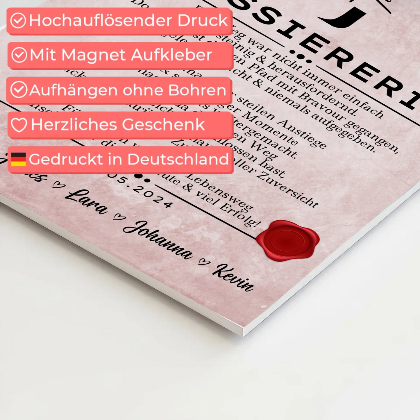 Ausbildungsabschluss Geschenk Kassiererin Urkunde Magnet Wandbild Fotoboard – Das perfekte personalisierte Abschiedsgeschenk