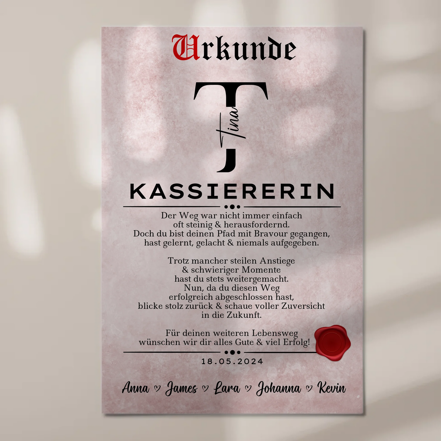 Ausbildungsabschluss Geschenk Kassiererin Urkunde Magnet Wandbild Fotoboard
