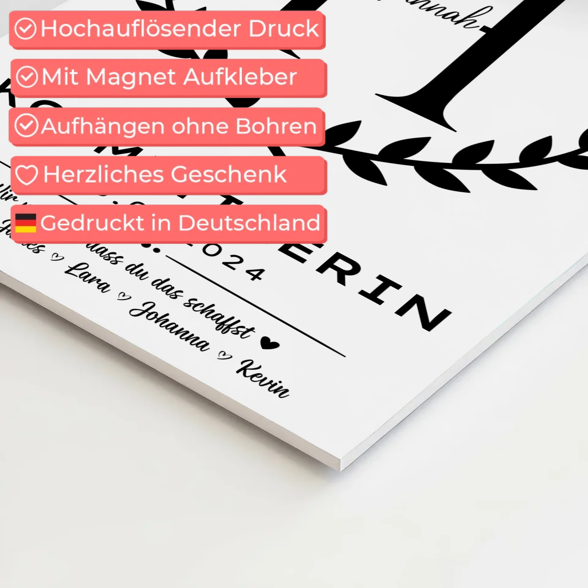 Du suchst nach einem einzigartigen und persönlichen Ausbildungsabschluss Geschenk, das die erfolgreiche Reise deiner Freundin, Kollegin oder Tochter würdigt? Unser Ausbildungsabschluss Geschenk Kosmetikerin Fotoboard ist die ideale Wahl, um den Abschluss ihrer Ausbildung stilvoll zu feiern. Dieses individuell gestaltbare Fotoboard kannst du ganz nach deinen Wünschen personalisieren: Füge den Initial Buchstaben, das Datum sowie einen Wunschtext hinzu und schaffe so ein unvergessliches Andenken an diesen besonderen Moment. Das Geschenk eignet sich perfekt als Abschiedsgeschenk oder als Erinnerung an den erfolgreichen Abschluss der Ausbildung zur Kosmetikerin. Mit diesem Fotoboard setzt du ein persönliches Zeichen und machst das Geschenk zum Highlight jeder Abschlussfeier. Ob als Geschenk Abschluss Ausbildung oder als besonderes Präsent zum Abschluss Ausbildung – dieses personalisierte Fotoboard wird garantiert für Freude sorgen. Überrasche deine Liebste mit einem individuellen Ausbildungsabschluss Geschenk, das ihre Leidenschaft und ihren Erfolg widerspiegelt. Es ist nicht nur ein dekoratives Element, sondern auch eine bleibende Erinnerung an ihre harte Arbeit und ihren Erfolg auf dem Weg zur professionellen Kosmetikerin.