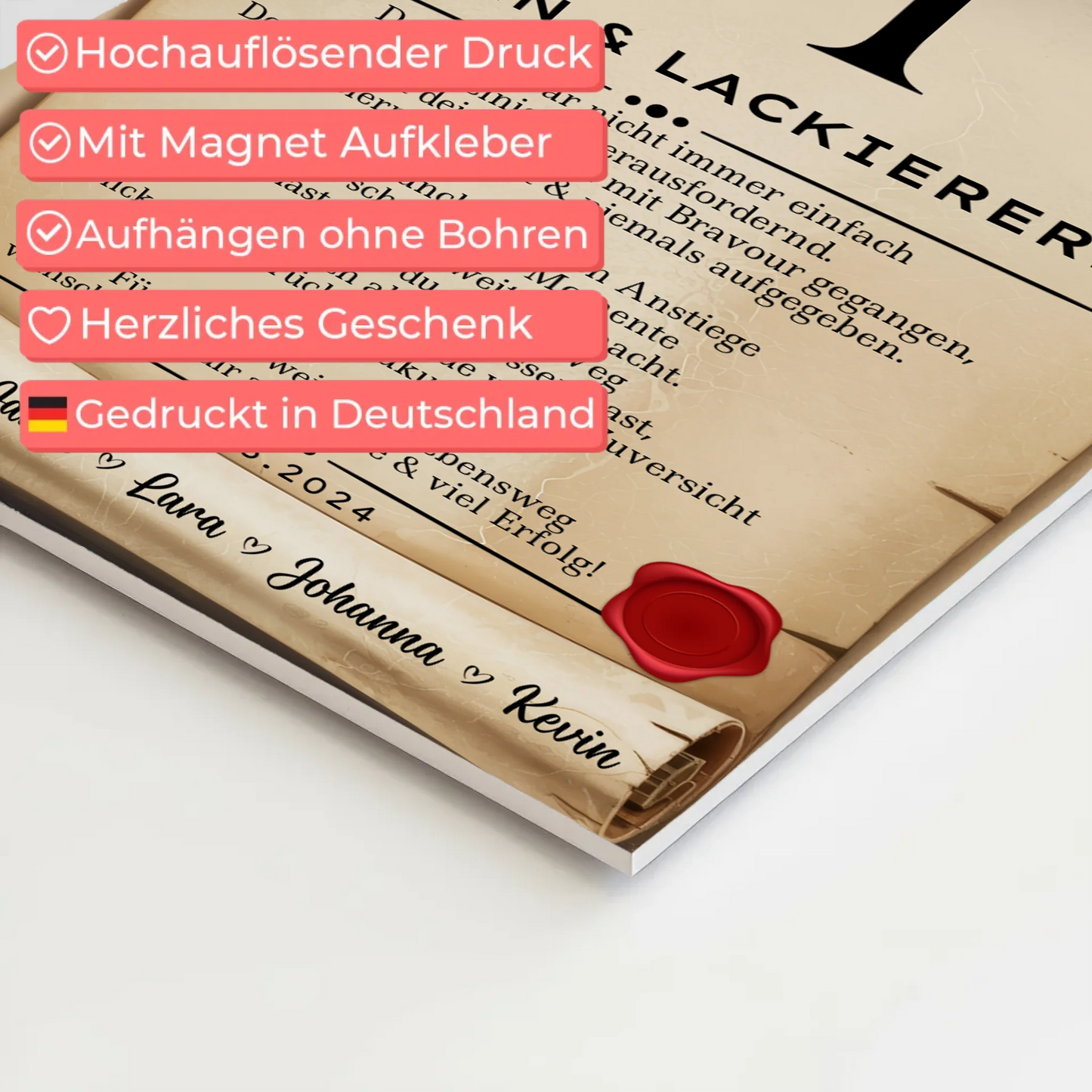 Ausbildungsabschluss Geschenk Malerin & Lackiererin Urkunde Magnet Wandbild Fotoboard – Persönlich und einzigartig
