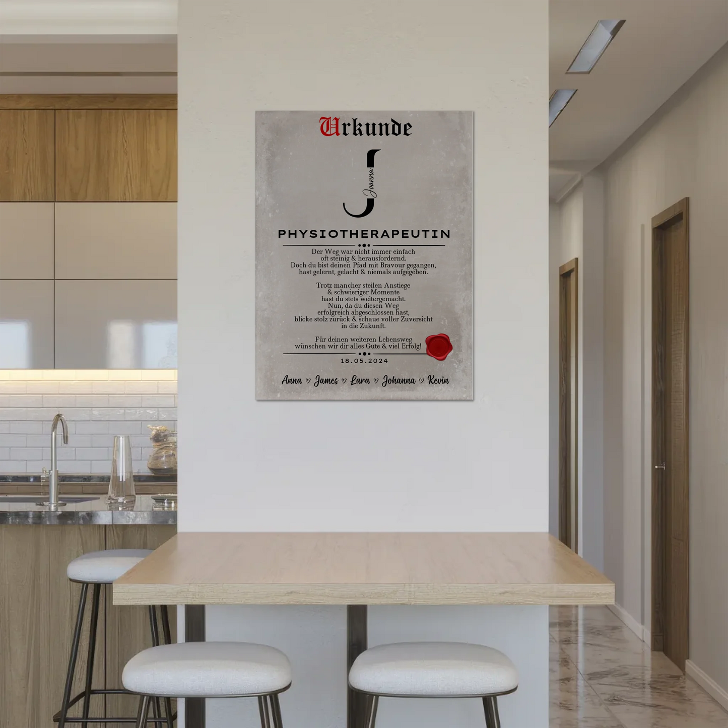 Ausbildungsabschluss Geschenk Physiotherapeutin Urkunde Fotoboard Magnet Poster – Das perfekte personalisierte Geschenk zum Abschluss