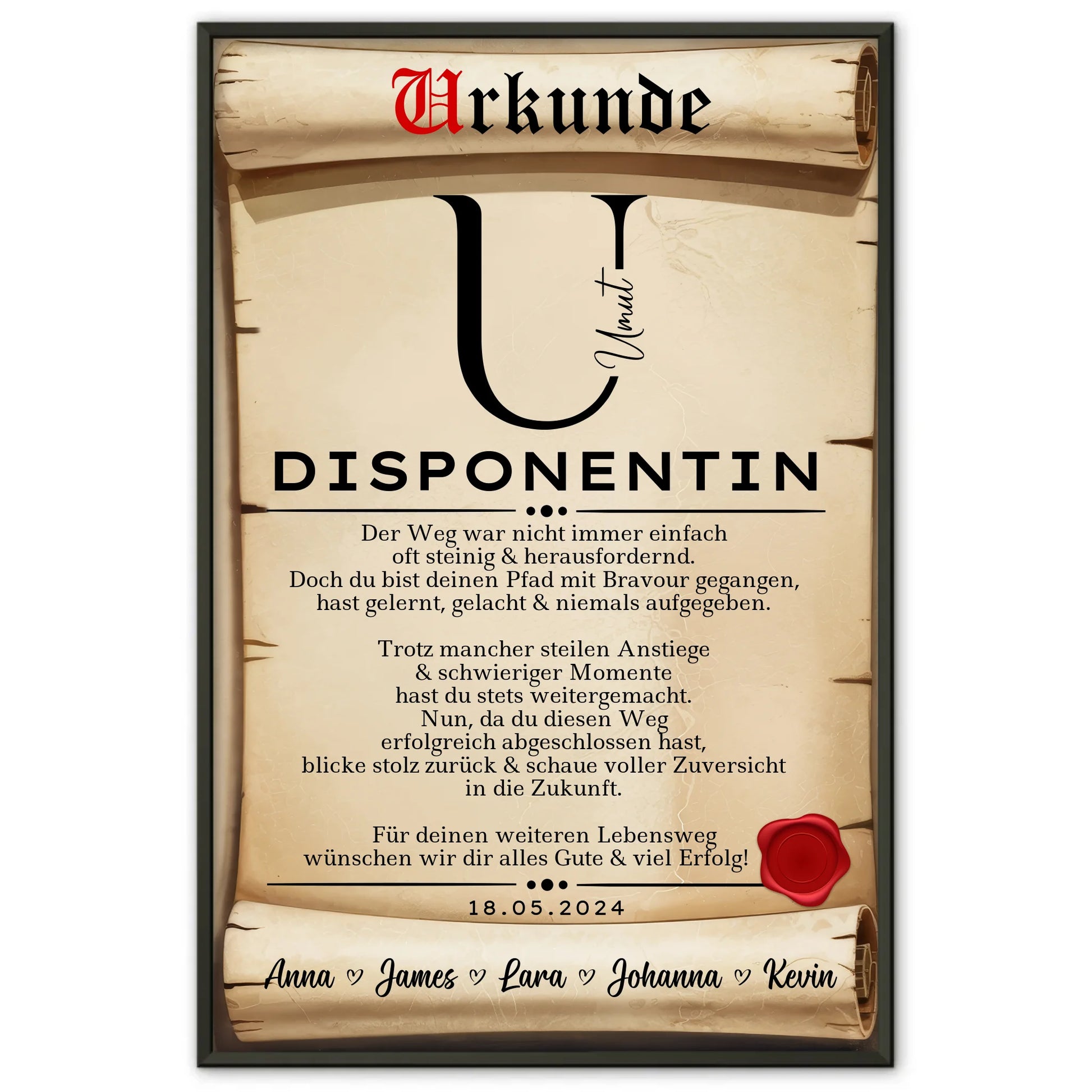 Ausbildungsabschluss Geschenk Poster Urkunde Disponentin – Das perfekte personalisierte Geschenk zum Abschluss