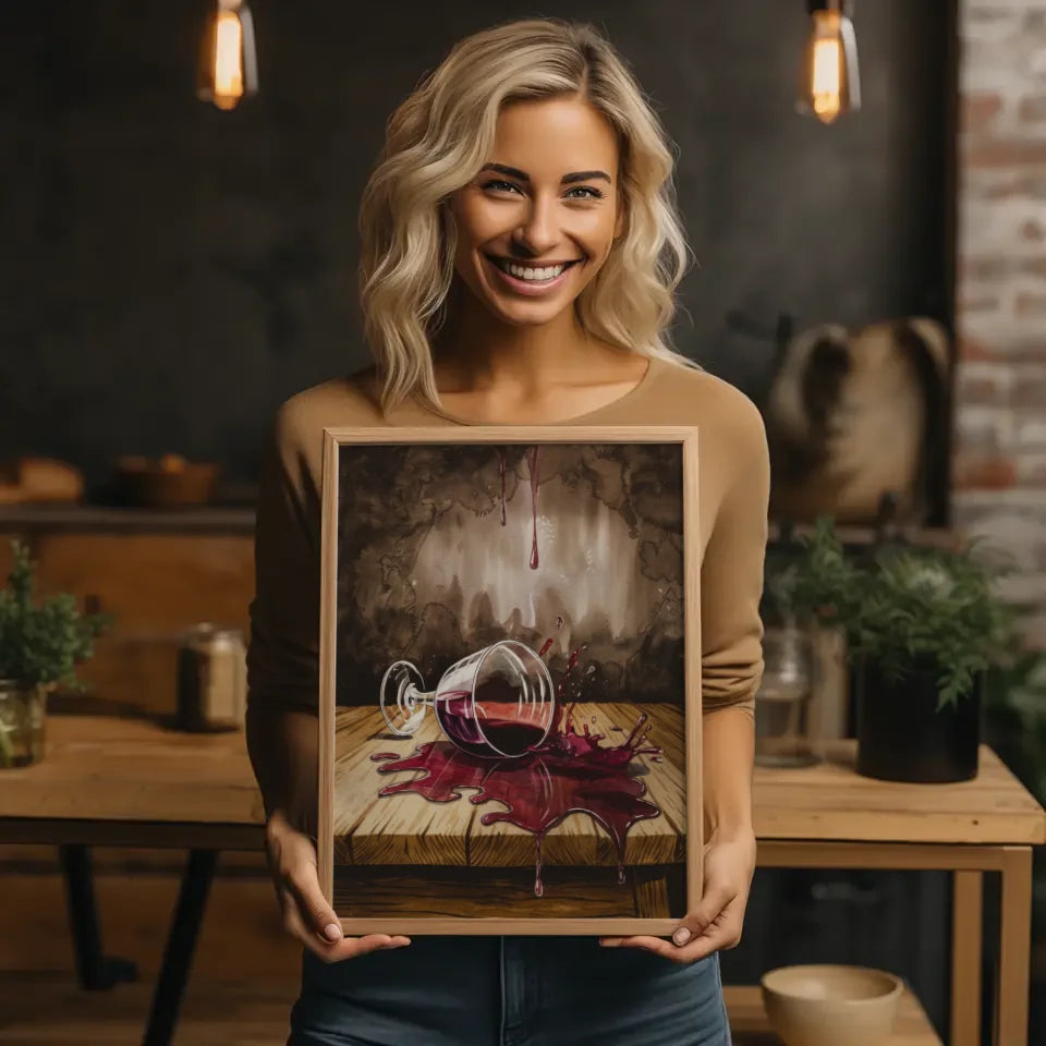 Der gedämpfte weiße Hintergrund hebt die kräftigen Farben des Plakats hervor und sorgt für einen faszinierenden visuellen Effekt. Dieses exquisite Poster ist ideal für modebewusste Menschen, die ihr Zuhause mit einem einzigartigen Kunstwerk verschönern möchten. Bringen Sie mit diesem avantgardistischen Poster, das leuchtend rote Lippen und Luxusakzente kombiniert, frischen Wind in Ihre Wohnatmosphäre!
