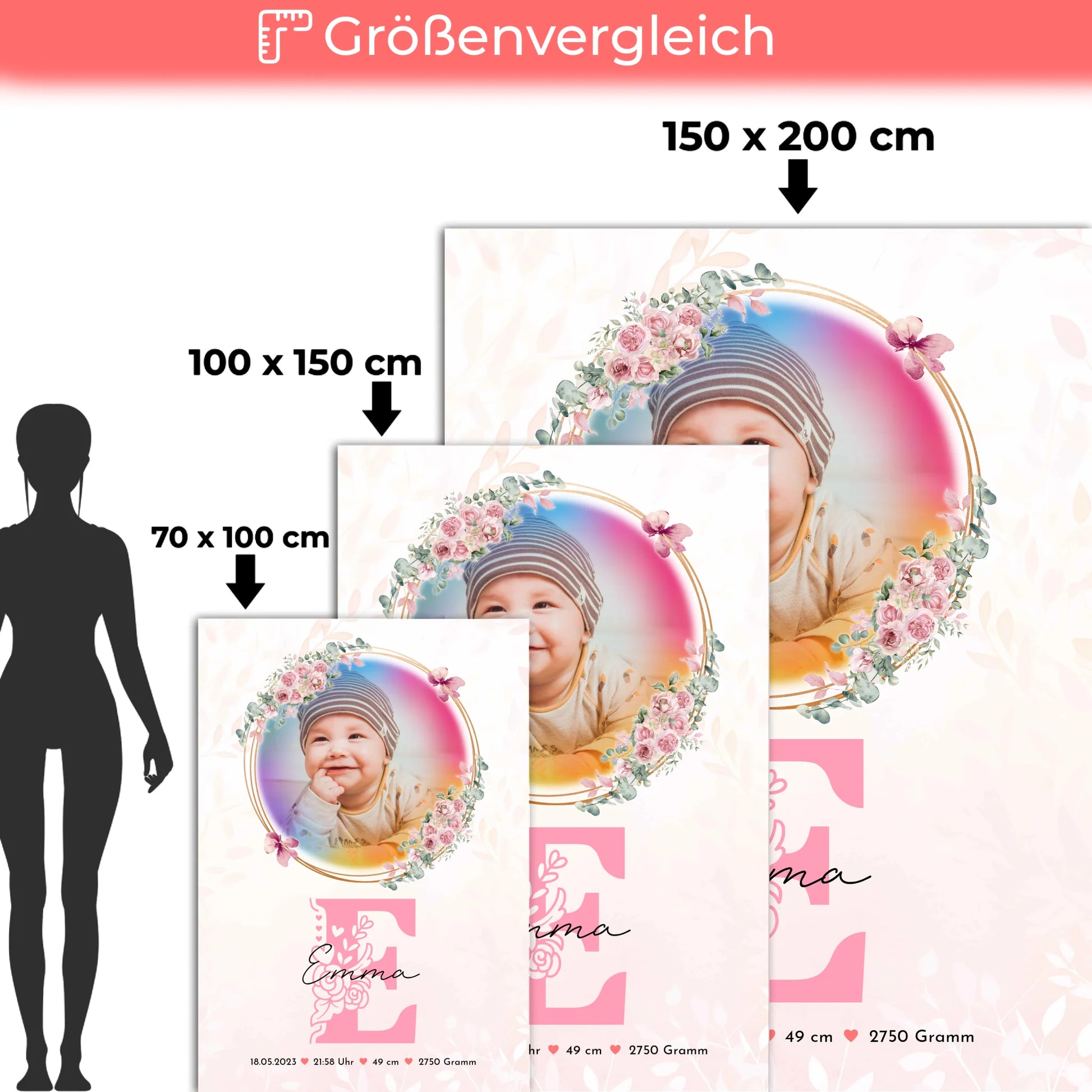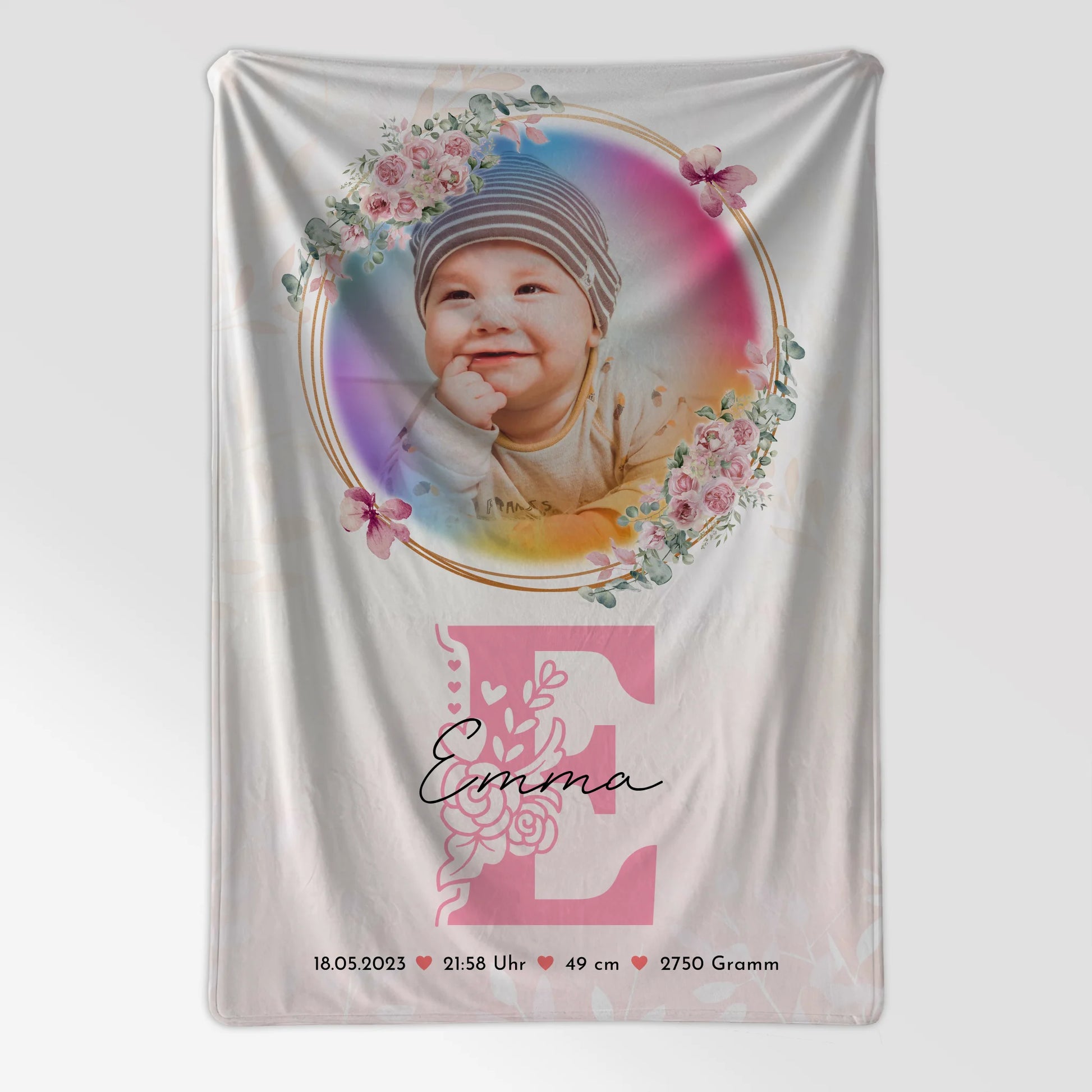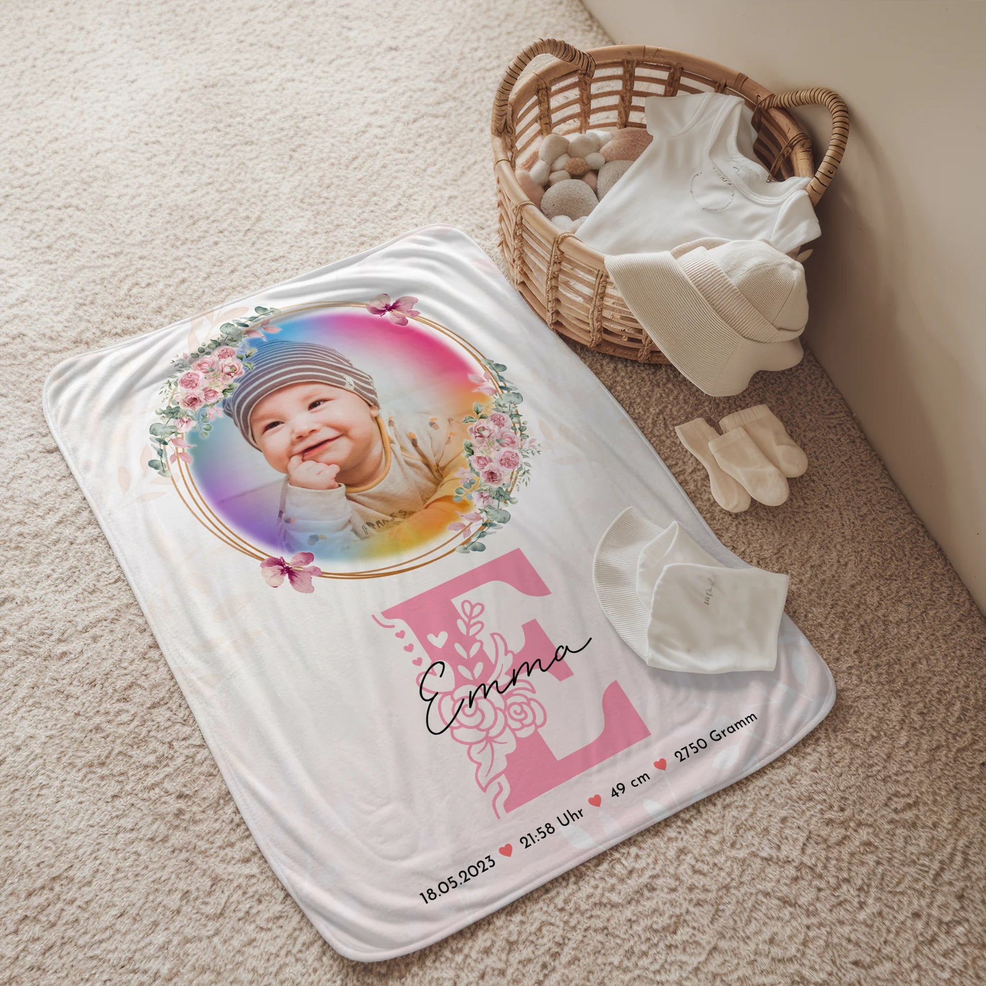 Babydecken Mit Namen mit Foto Geburtsdaten Gewicht Uhrzeit Datum Initiale & Name