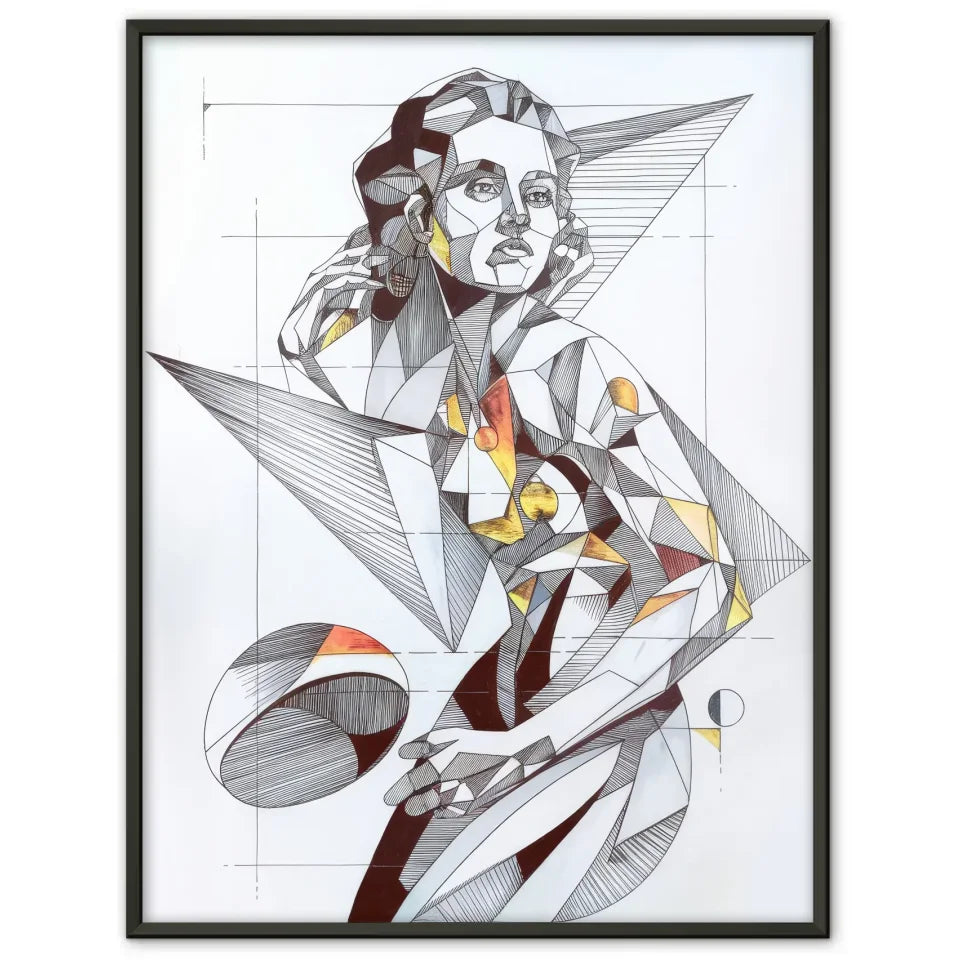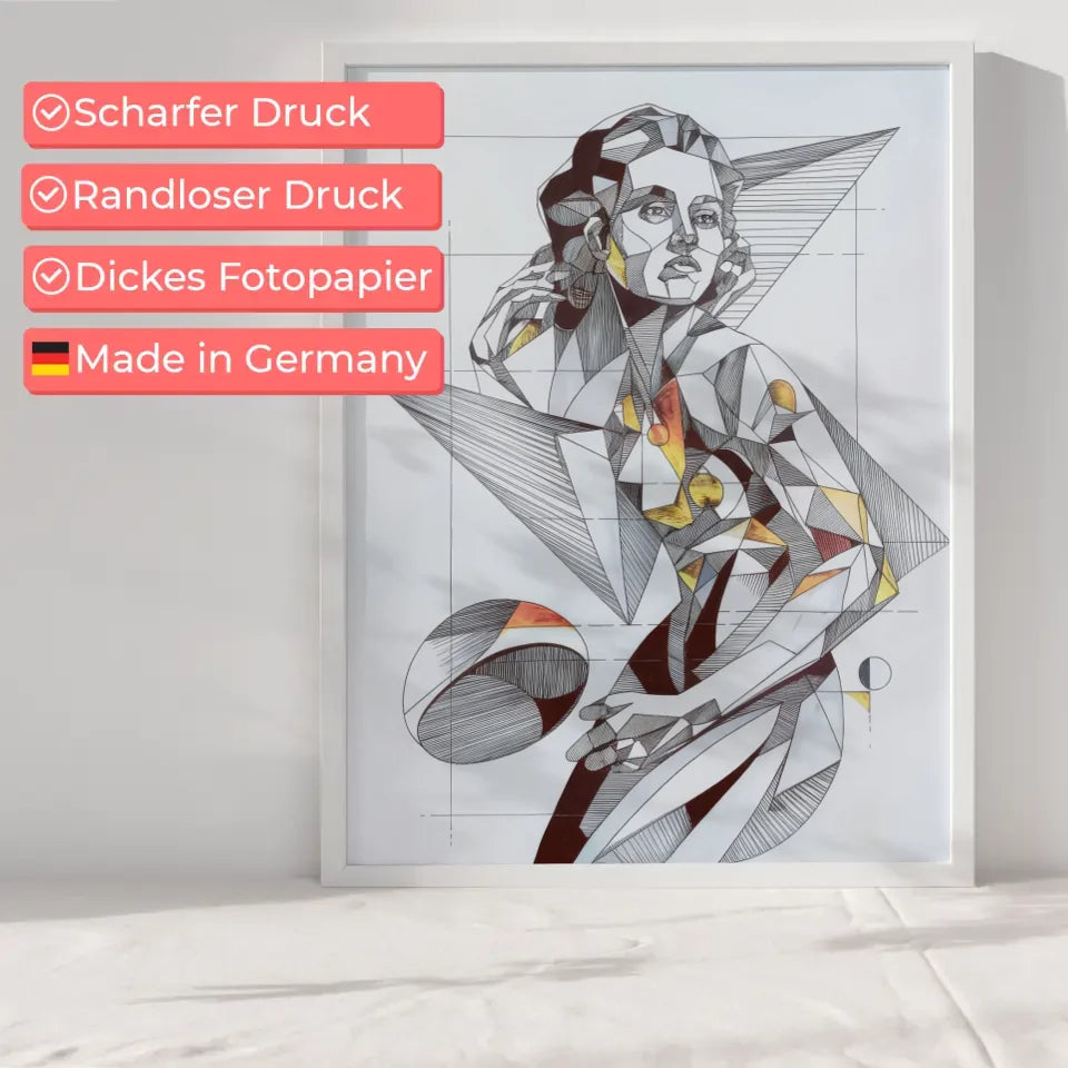 Entdecken Sie unser einzigartiges Bauhaus Poster mit weiblicher Figur und geometrischen Formen, das Ihre Wände in ein visuelles Meisterwerk verwandelt. Diese eindrucksvolle Illustration ist inspiriert vom berühmten Bauhaus-Stil und kombiniert kunstvoll eine elegante weibliche Figur mit komplizierten geometrischen Formen. Jedes Detail des Posters spiegelt das außergewöhnliche Können des Künstlers wider und bietet eine faszinierende Verbindung von Abstraktion und Realismus.