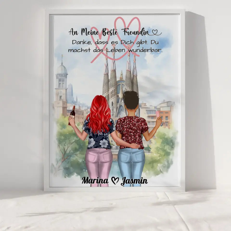 Unser Beste Freundin Poster Danke Watercolor Landschaft Barcelona