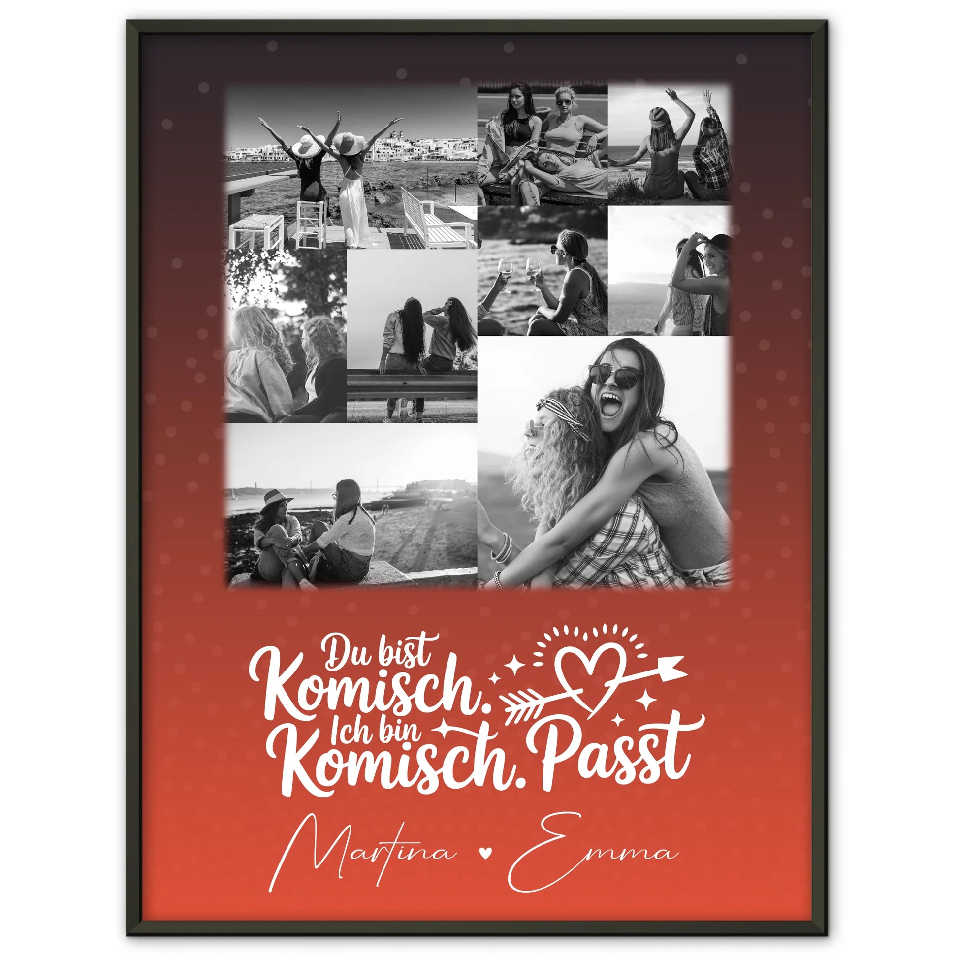 Überrasche deine beste Freundin mit diesem personalisierten Poster und schenke ihr eine tägliche Erinnerung an eure unzertrennliche Verbindung. Es ist nicht nur ein Geschenk, sondern ein Beweis eurer Freundschaft, der für immer einen Ehrenplatz an ihrer Wand finden wird. Bestelle jetzt und gestalte ein Geschenk, das so einzigartig ist wie eure Freundschaft.