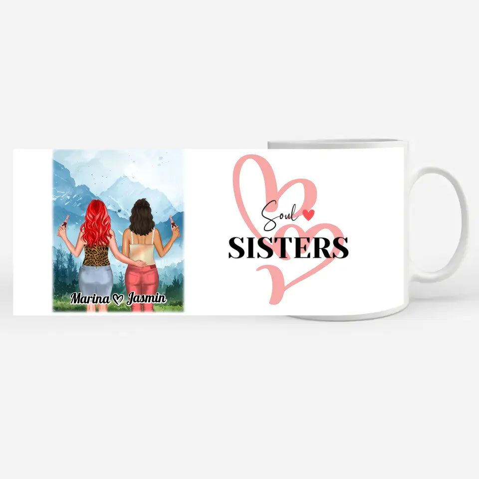 Du möchtest mal wieder etwas einzigartiges verschenken? unsere Beste Freundin Tasse Mit Namen Alpen Berge Soul Sisters das perfekte personalisierbare Geschenk.