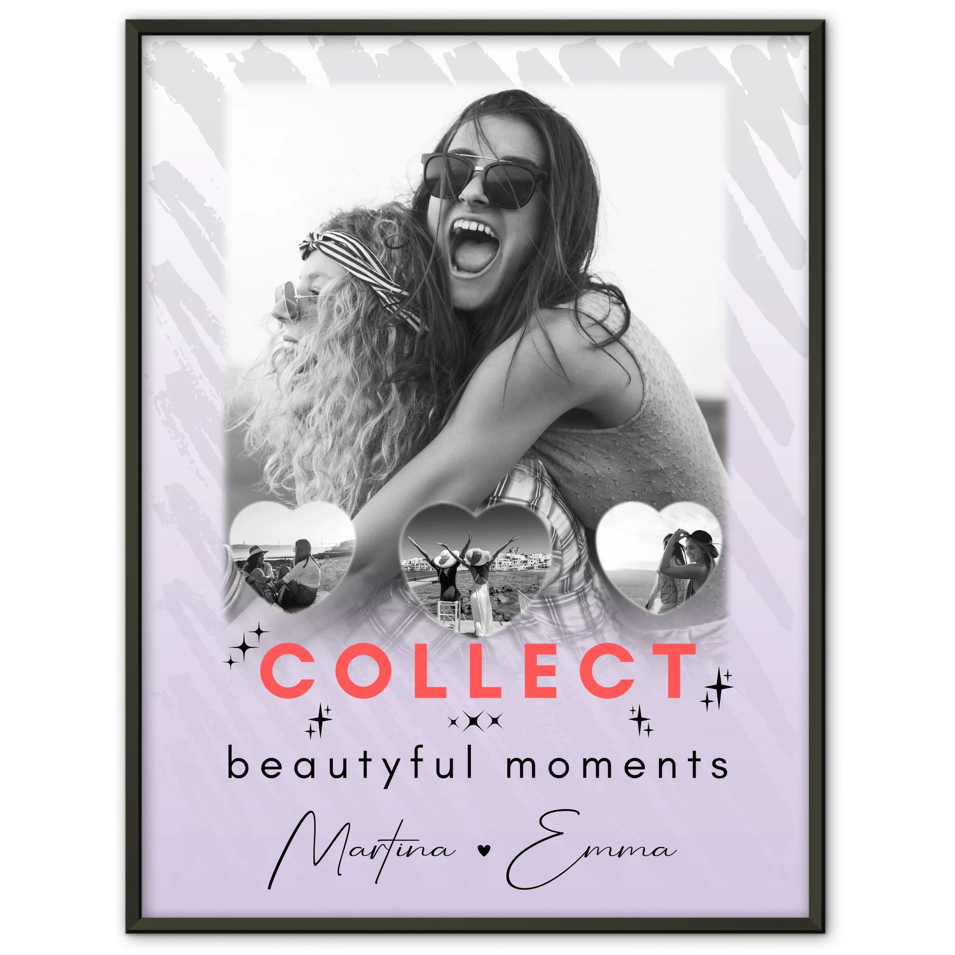 Suchst du nach dem perfekten, persönlichen Geburtstagsgeschenk für deine beste Freundin? Überrasche sie mit unserem einzigartigen Beste Freundinnen Poster Personalisiert 1 Foto und 3 Herz Fotos Collect Beautyful Moments. Dieses Poster ist mehr als nur eine Dekoration; es ist eine liebevolle Hommage an eure unzertrennliche Freundschaft und die vielen wundervollen Augenblicke, die ihr geteilt habt. Unter dem Motto Collect Beautyful Moments könnt ihr eure schönsten Erinnerungen stilvoll festhalten.